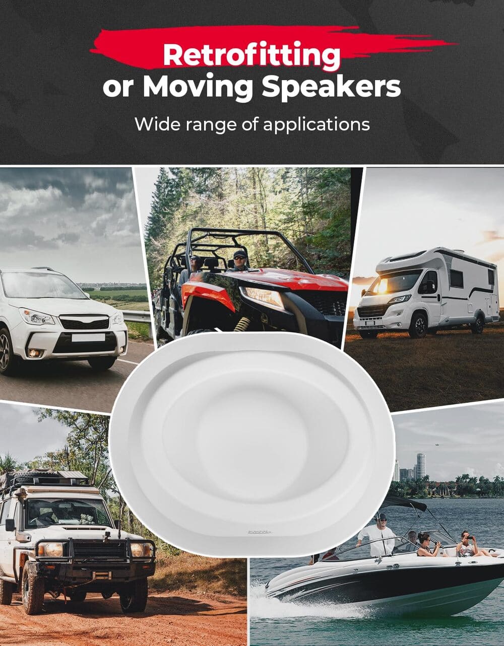 The 6x9 speaker box pods are designed with sealed pad, which can help speakers to be mounted tightly and prevent sound leakage, which will give you better user experience and sound enjoyment.