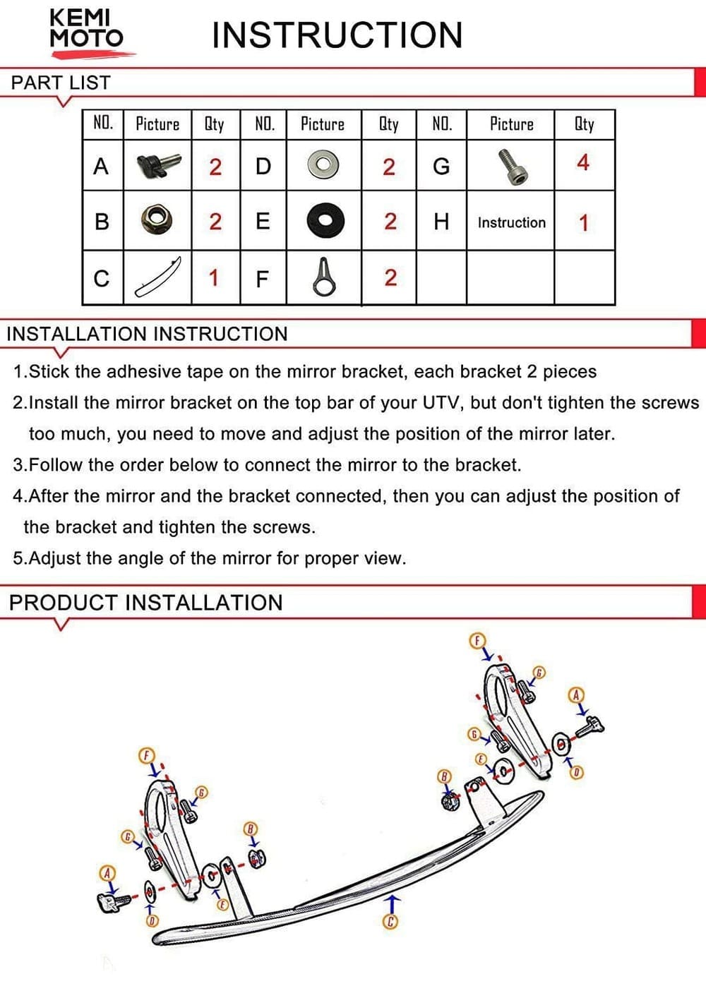 The brackets provide a steady mounting and 3 adjustment methods for the rzr rearview mirror, anti-friction, and corrosion resistant, can be adjusted to the best angle of backside viewing.