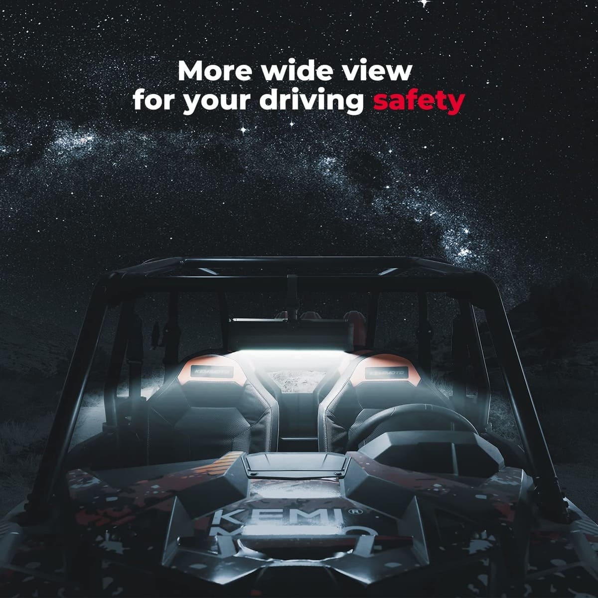 Kemimoto Upgraded UTV Rear View Center Mirror Interior Light fit 1.6"-2" Mount