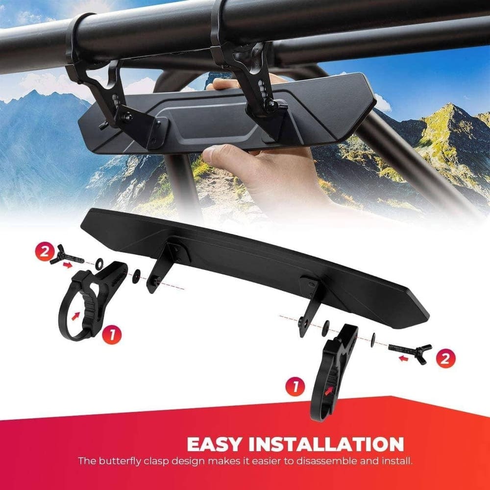15" length of utv center mirror, provides a super-wide field of vision for you to easily prevent blind spots and some traffic accidents, which can improve your safety greatly.