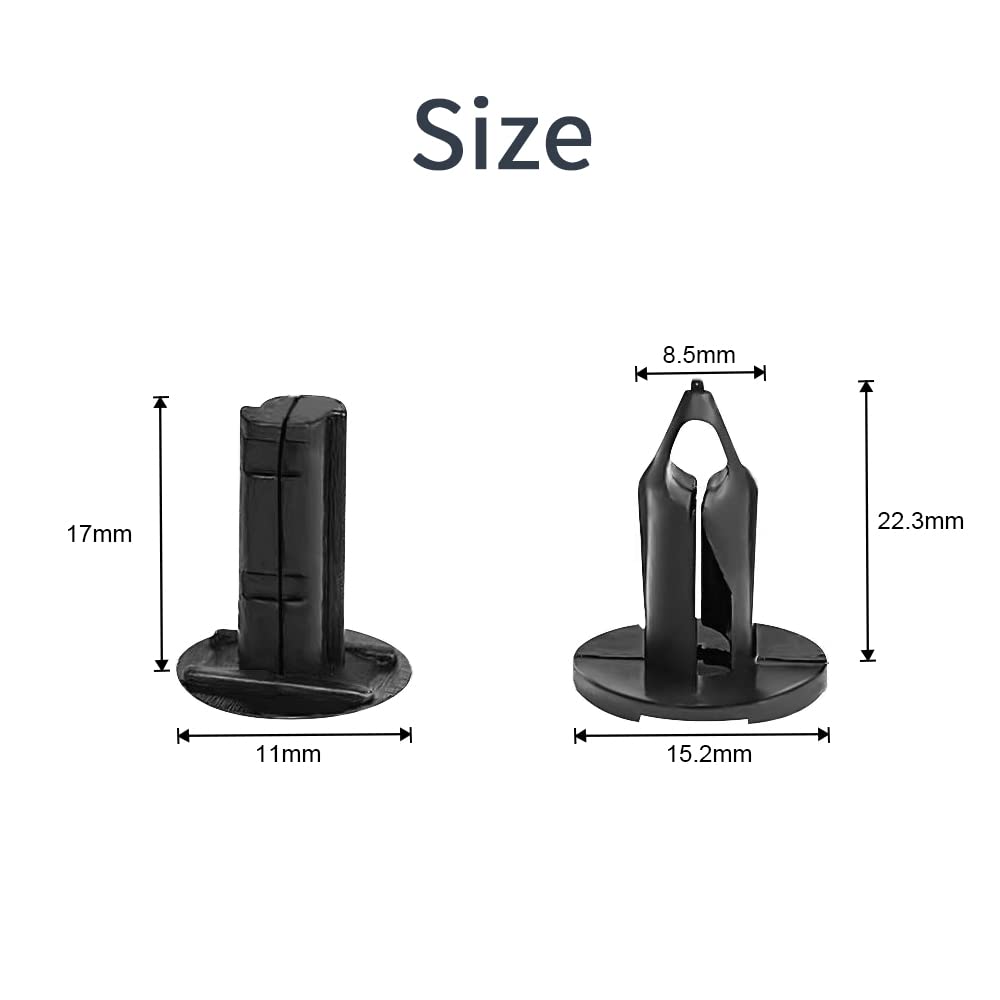 Push-type plastic clips dimensions: Head Diameter: 20mm/ 0.8 inches; Stem Length: 22.8mm/ 0.9 inches