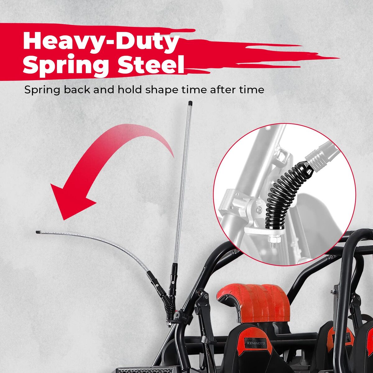Kemimoto Spring Mounting Bases are specially designed for Whip Lights, UTV ATV side by side offroad led whip lights. Quick easy upgrade your whip lights. DO NOT work for antennas.