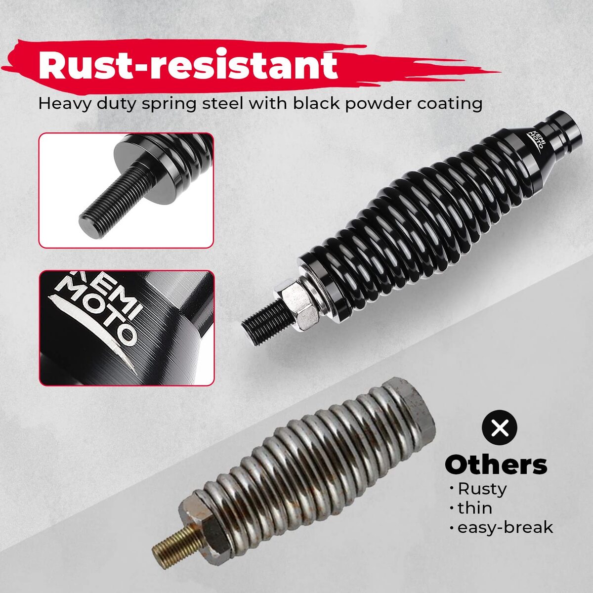 KEMIMOTO Spring Bases are made of heavy-duty Spring Steel with Solid Black Powder Coating. The washers and nuts are 304 Stainless Steel which means the bases are anti-rust, corrosion, and scratch resistant.