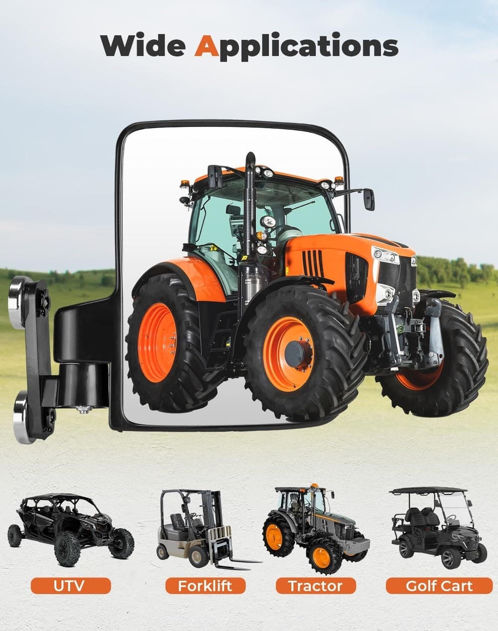 KEMIMOTO magnet mirrors feature 7.1x5.3-inch side mirrors that provide a wider and clearer view of both sides of the tractor and the rear, especially when turning and reversing.
