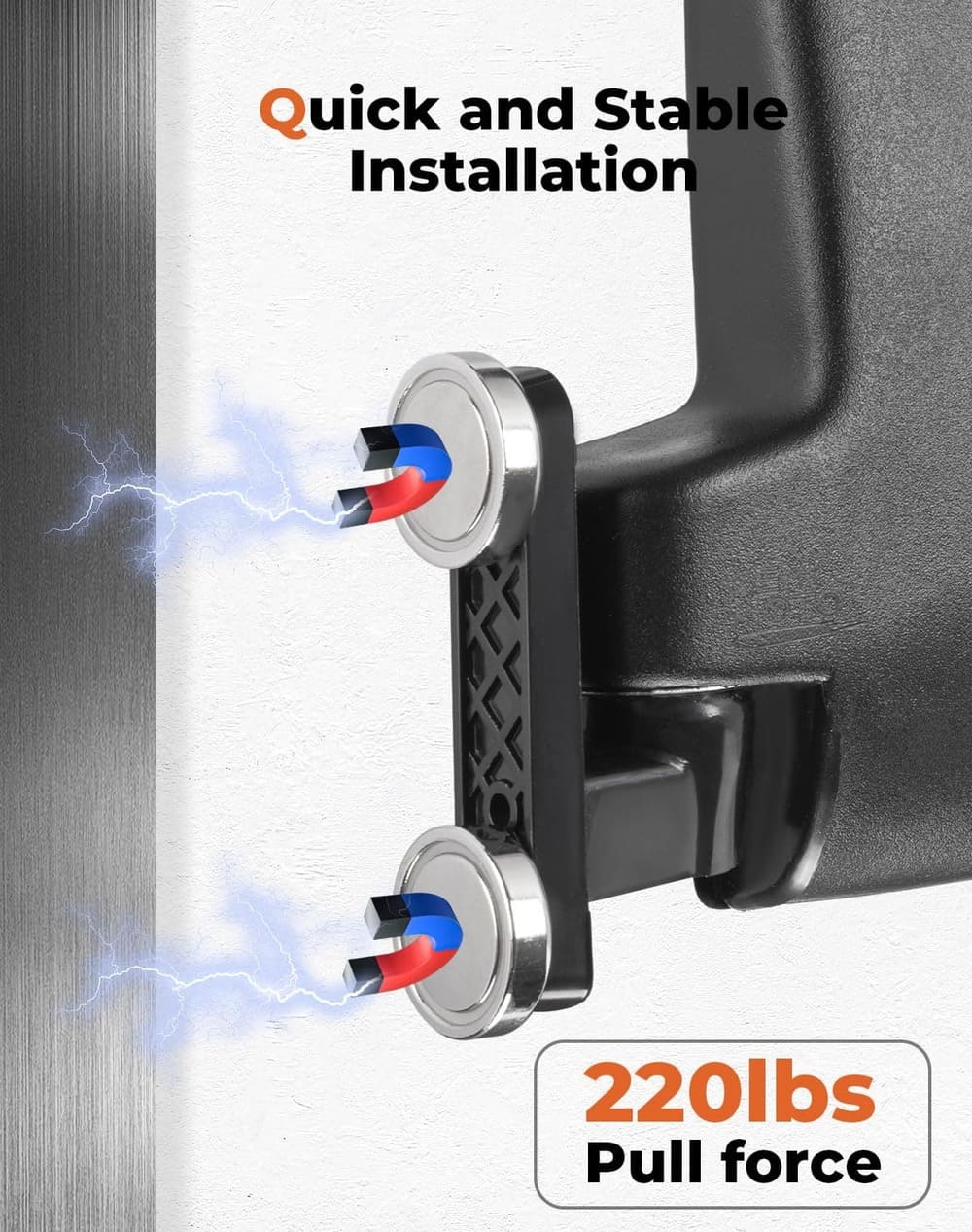 Easy to install, each mirror features a strong magnet with a maximum pull force of 220 lbs, ensuring magnetic attraction that defies all odds. No drilling or tools are required.