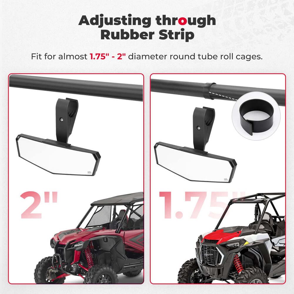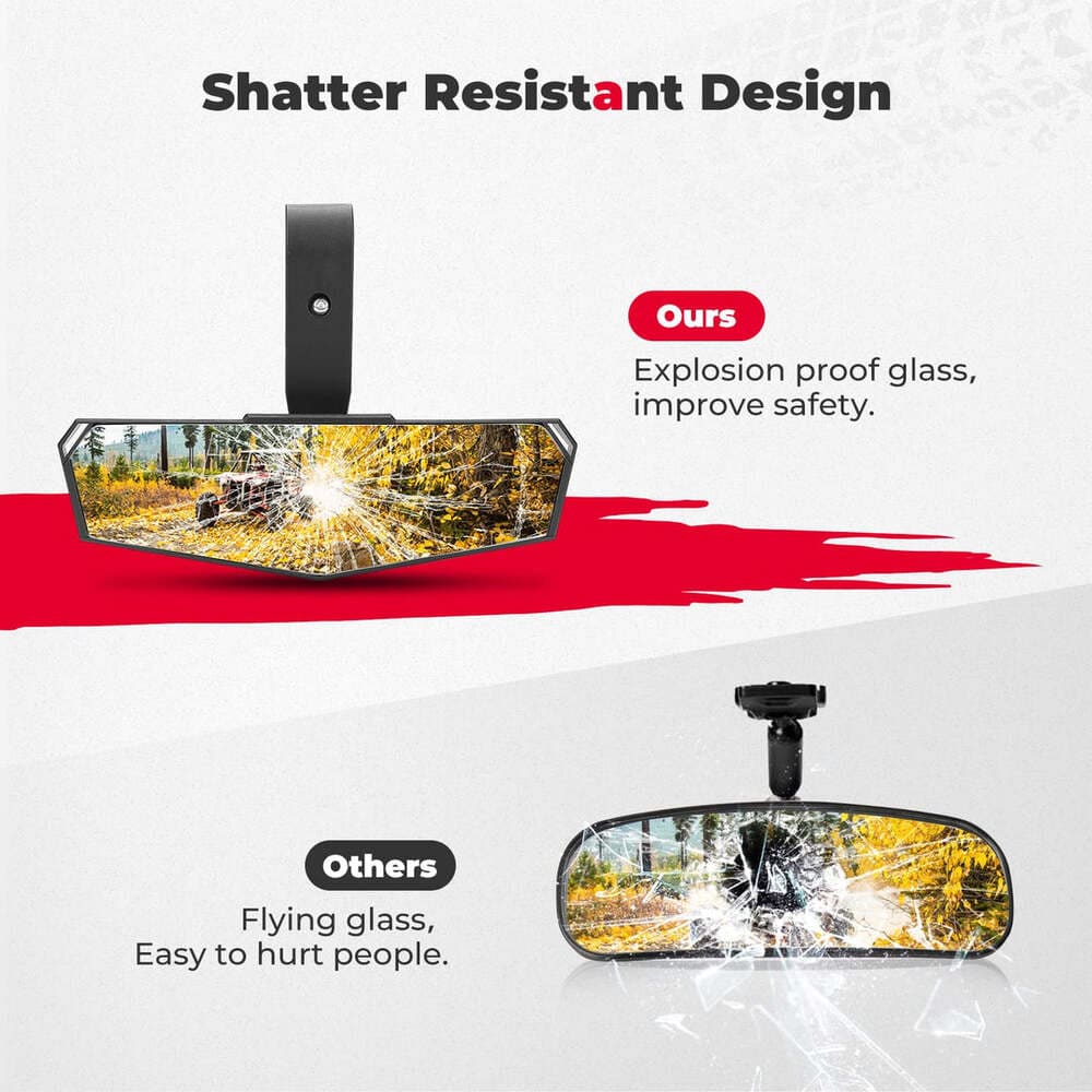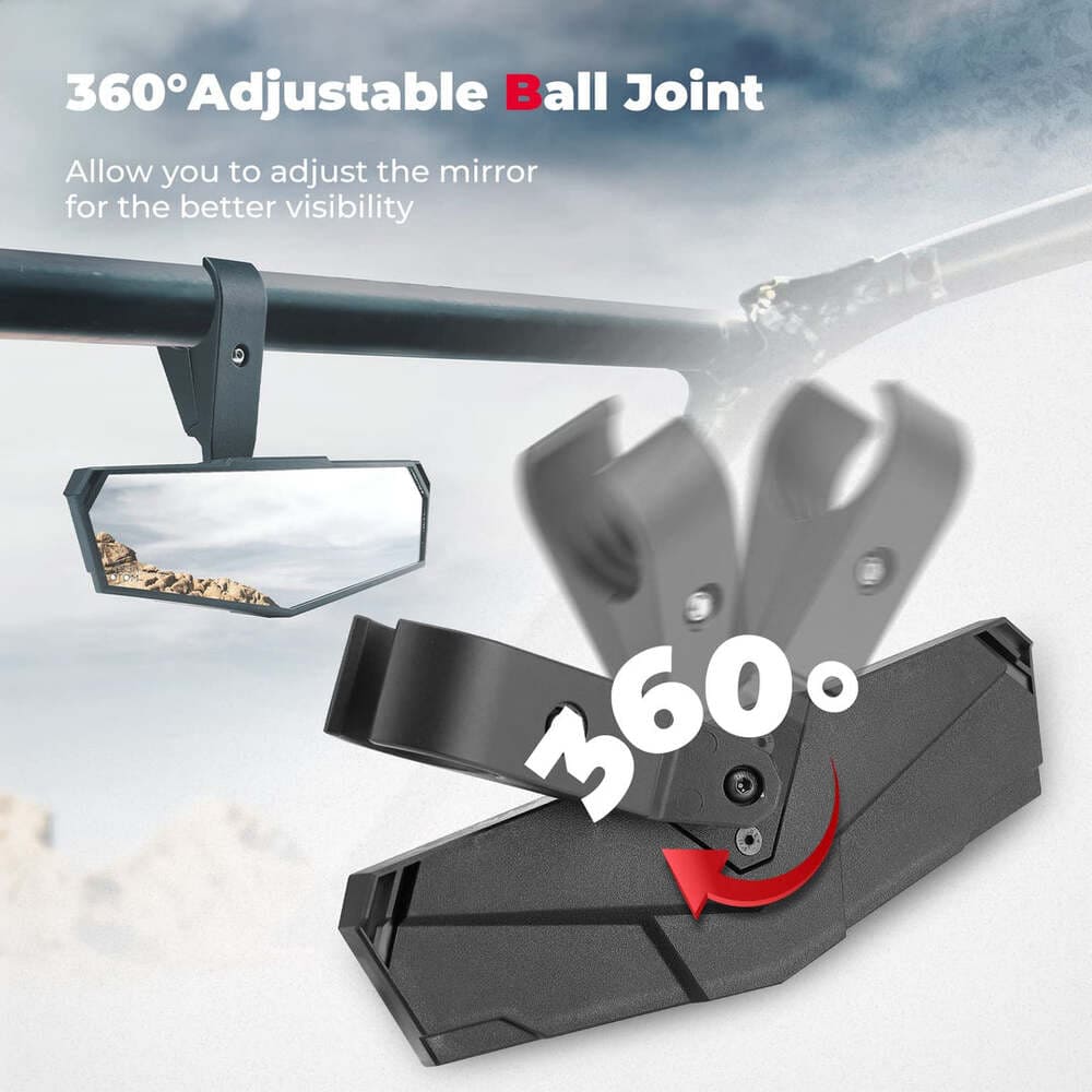 Non-slip ball joint, 360-degree rotation to adjust your view angle. This UTV mirror can gives good angle of rear view.