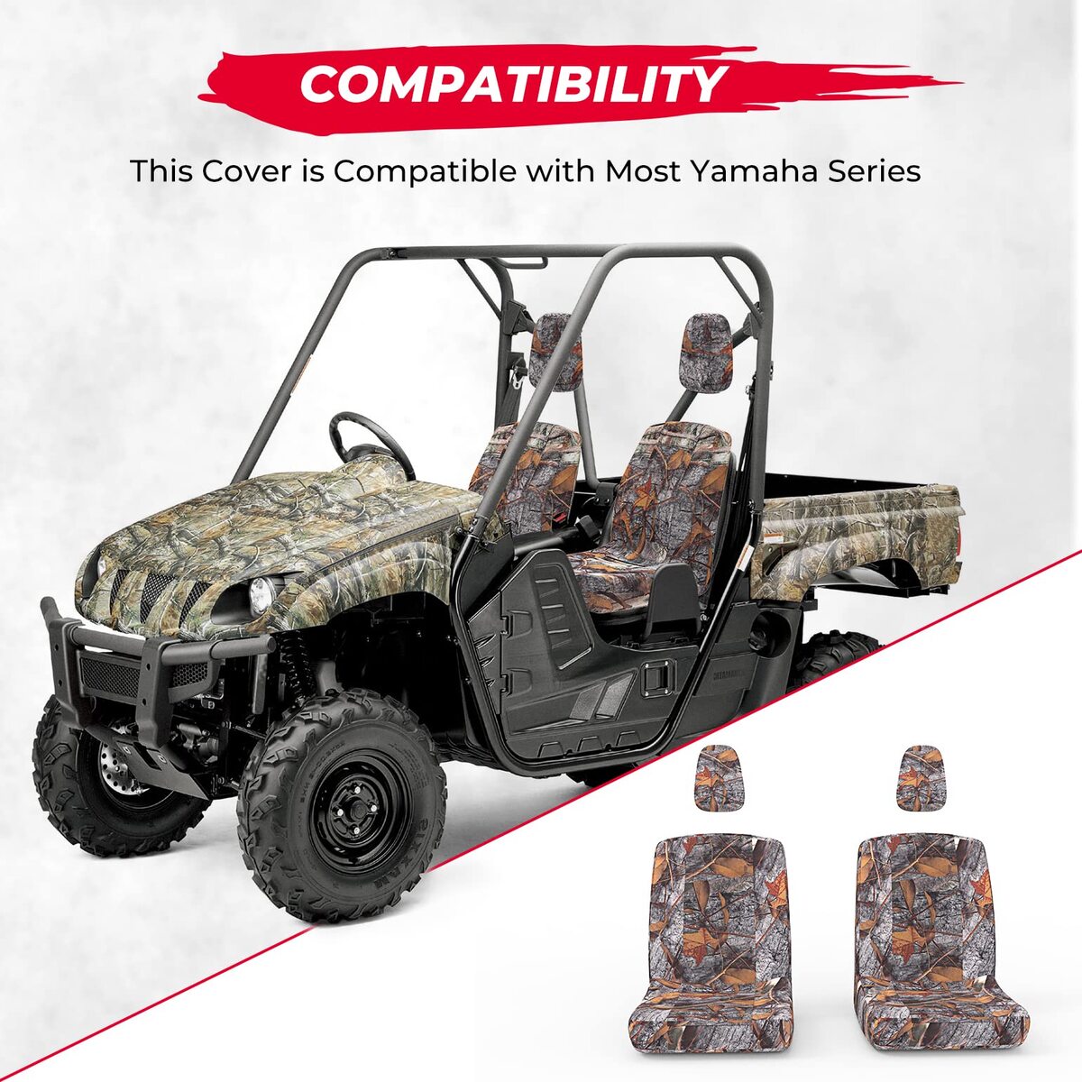 Kemimoto seat covers for UTV bset provide 2 seat covers and 2 headrest covers, with our camouflage UTV seat cover, you can protect your new seat or give your old seat a new look. Notice:The hole in the seat was a water drain hole.