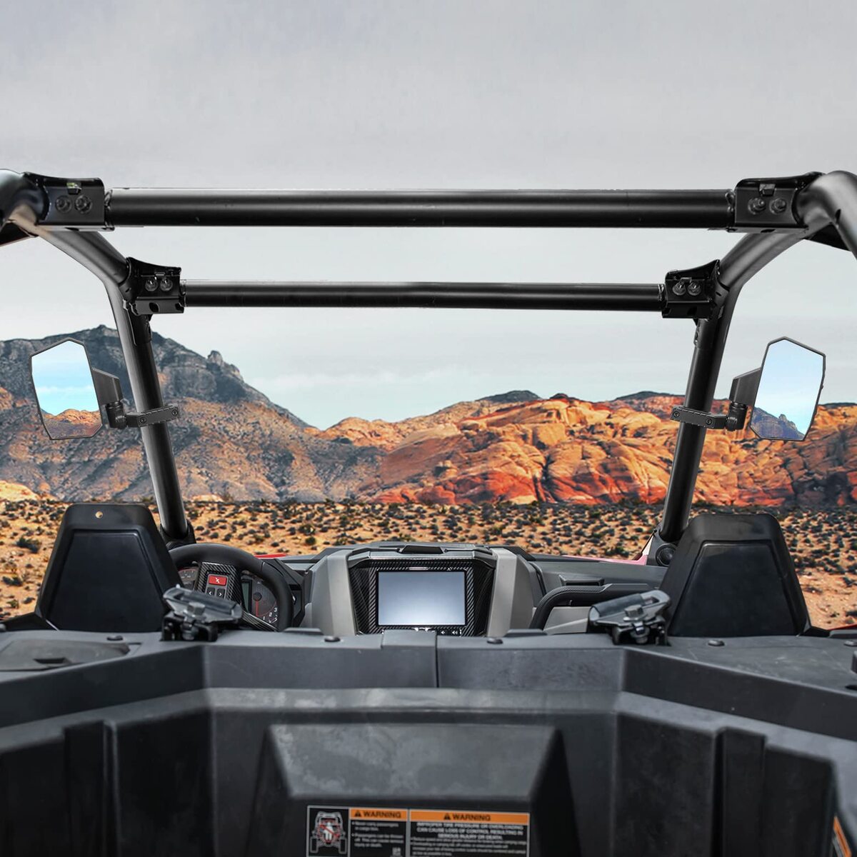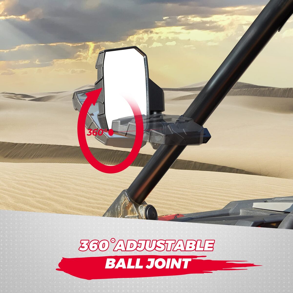 UTV rear view mirrors with 360 Degrees adjustable ball pivot,makes it easier to adjust the angle of UTV mirrors for you need.It helps reduce blind spots and greatly improves driving safety.