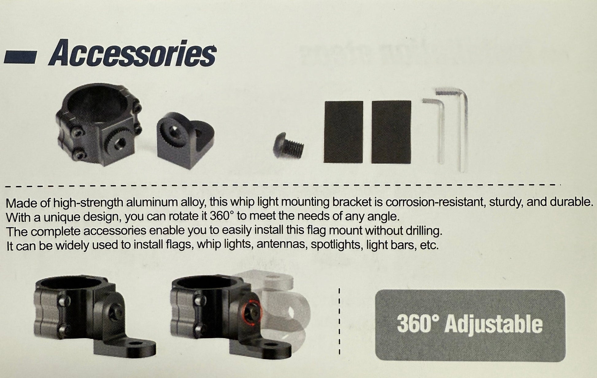 Our UTV LED Whip Mounting Bracket is also compatible with most LED whip brands and sizes, making it a versatile and practical addition to any off-road enthusiast's UTV.