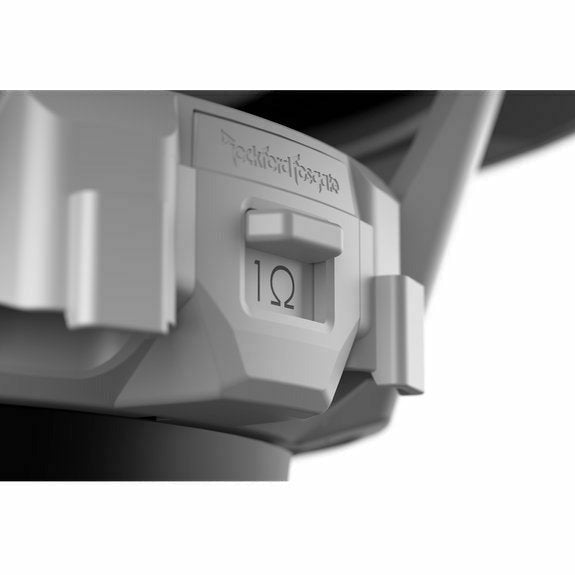 The M2 series of Element Ready™ subwoofers are designed to pair with the Rockford Fosgate Color Optix™ Controller and RF Connect App through its Deutsch™ and Amphenol™ connectors integrated into the basket. This combined with their IP67 certification make these speakers Element Ready™ and truly purpose built for marine applications. To compliment the plug and play connectivity and streamline installation, M1 subwoofers are equipped with a VersaSwitch™ to make changing impedance between 1 and 4 ohms as easy as flipping a switch.