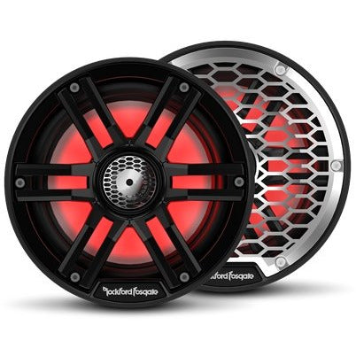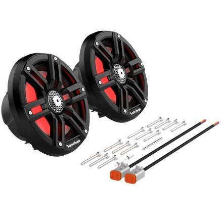 The M2-65B Color Optix™ 2-way 6.5” speakers deliver loud, clear, accurate sound, and light the way for your journey! The speakers connect with the Rockford Fosgate Color Optix™ Controller and RF Connect App, allowing you to customize your own color patterns. The Element Ready™ design and IPX6 certification makes them truly purpose-built for marine or motorsport applications where protection from damaging UV rays and water spray is essential. Includes standard and stainless steel grille inserts.
