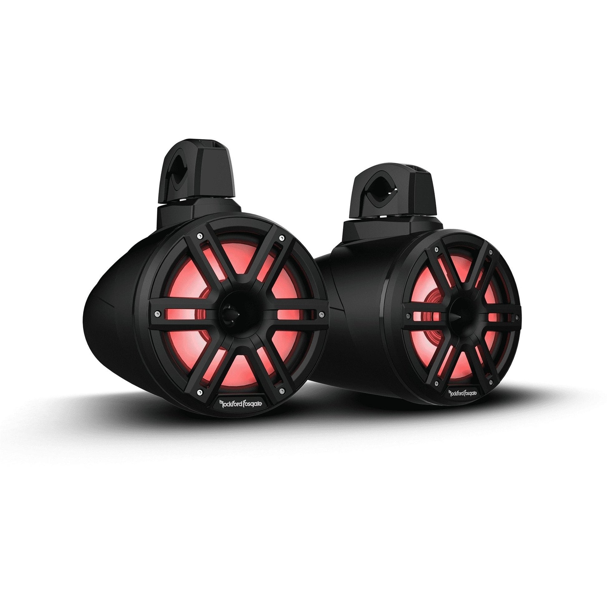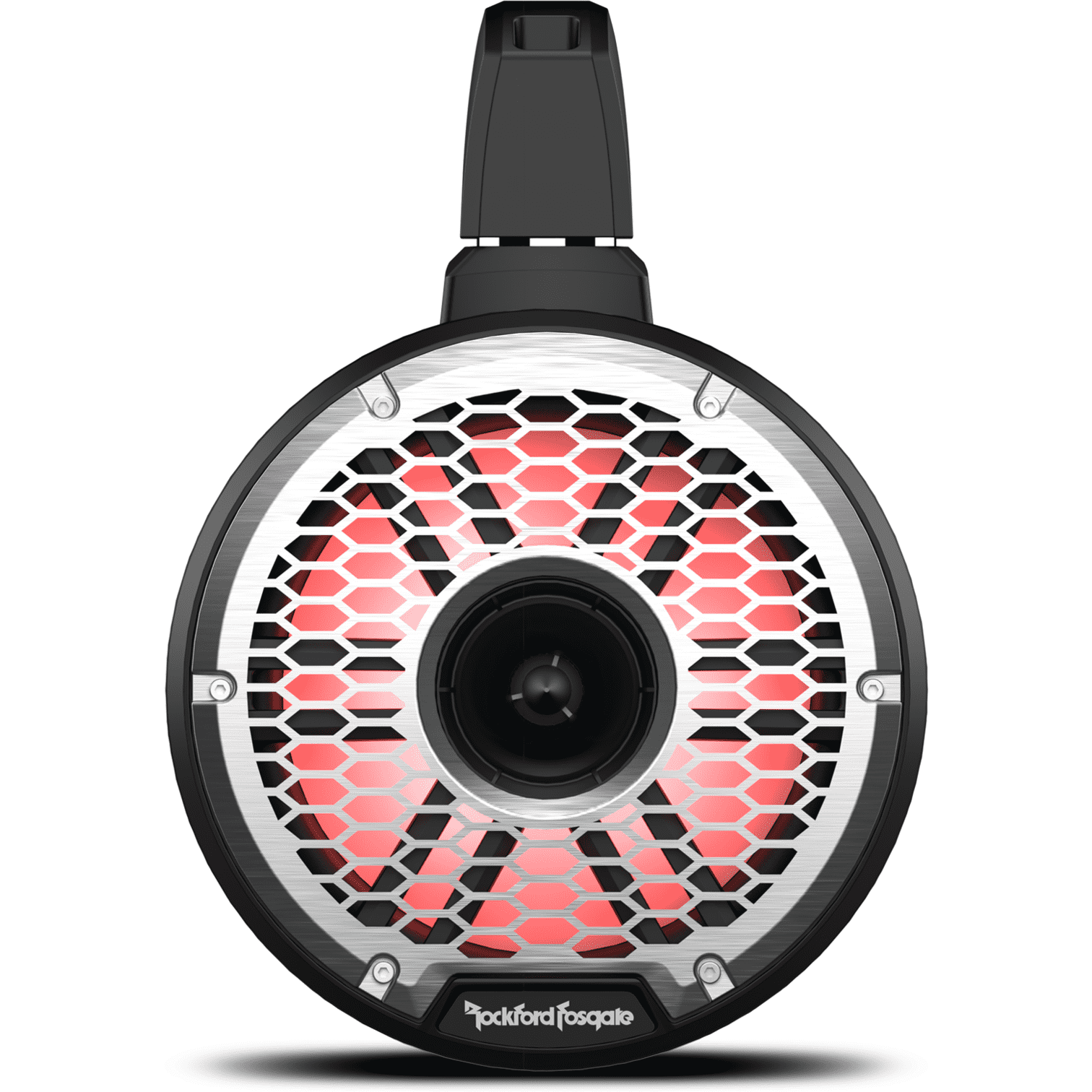 The M2WL-8HB Color Optix™ 8" 2-way speakers deliver loud, clear, accurate sound, and light the way for your fresh or salt-water journey! Exceptional clarity and distance is possible with the built-in loaded horn, designed to project music to the skier or wakeboarder. The M2 can be installed using direct mount or a clamp mount method that provides 360-degree rotation on wake tower bar sizes from 1.5” to 3”. The M2 includes stainless-steel and black “sport” grille inserts and features a rear illuminated 3DIL™ medallion that can be rotated 360-degrees for proper orientation. The speakers connect with the Rockford Fosgate Color Optix™ Controller (sold separately) and RF Connect App, allowing you to customize both front speaker and rear medallion with your own color patterns.