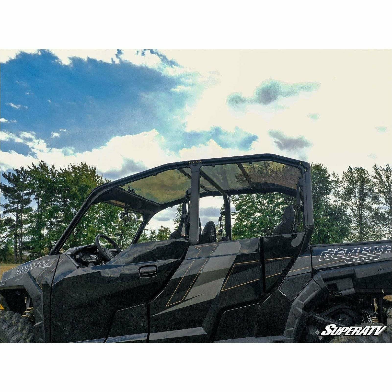 SuperATV's tinted roof gives you unparalleled visibility and awareness when you're out for a ride. When you come to a hill, this roof lets you see up before you start going up. If you're heading down a hill, you can see the bottom before you reach it. It let's in plenty of natural light so that your cab feels open even while it blocks UV rays and infrared heat. Bring the outdoors closer with SuperATV's tinted roof for the General 4 1000.