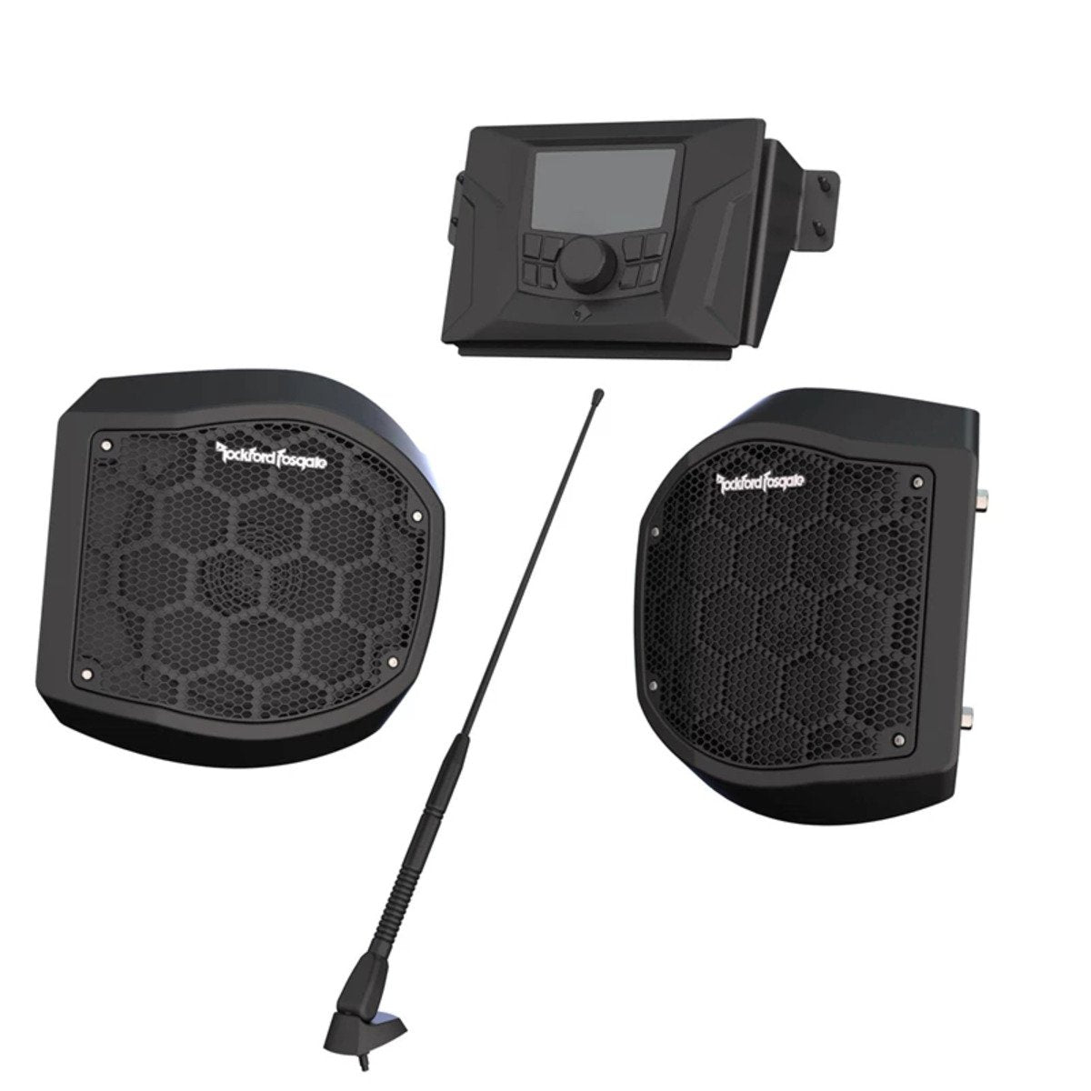 Equip your ORV with top quality audio on the trails with the Stage 1 Audio Kit by Rockford Fosgate®. With this head unit and dual 6.5 in. dash-mounted speakers, you can bring your favorite tunes with you to the jobsite or the trails. This audio kit gives you the choice between radio tuning, Bluetooth playback, AUX/USB input or Pandora® internet radio so that whatever you want to listen to, you can find it. The included components are IPX6 rated marine-grade to seal out moisture and dust and keep pumping out premium sound. With the full-color 2.7 in. TFT display, the head unit is visible, even in direct sunlight, and the simple controls make this the command center of your audio system. Bring your favorite songs with you wherever you go with this Stage 1 Audio Kit by Rockford Fosgate.