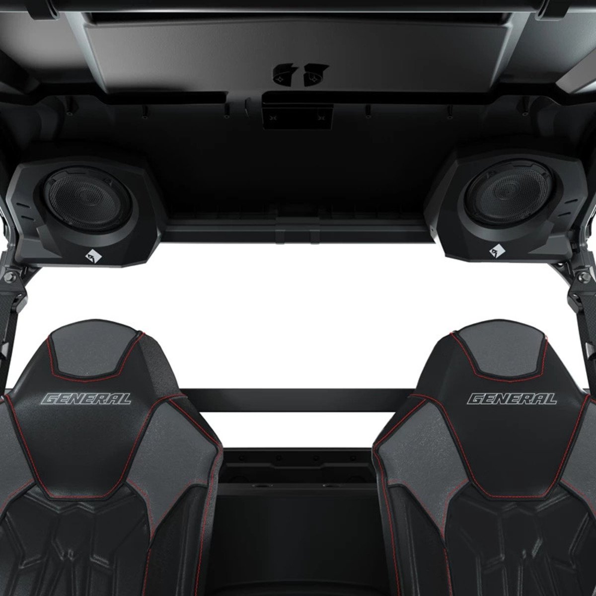 The Stage 2 PMX Kit + Rear Speakers pumps up the volume with top quality sound, built specifically for your General. The kit features a 400-watt 4 channel amplifier and 2, 50W coaxial 6.5 in. speakers that provide top quality sound. The kit has an IP67 rating which delivers water resistance and dust protection. This kit is intended for use with General PMX. A roof is required for installation.