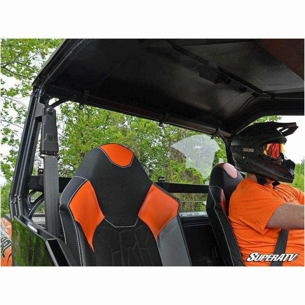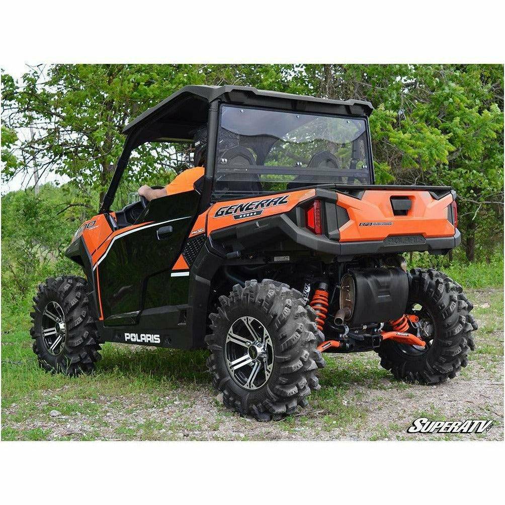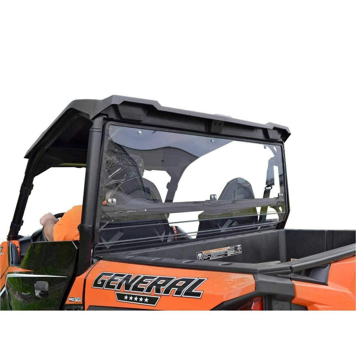 Why do you need a SuperATV Rear Windshield on your Polaris General? It protects you and your passenger from your own rooster tail, it prevents dust from getting sucked into your cab when you use a front windshield alone, and it keeps you comfortable in any weather. With a clear or tinted rear windshield, every day is ride day.