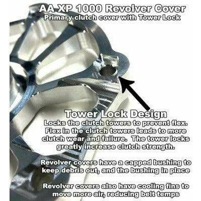 Strengthens the clutch and adds additional airflow for cooler belt temps. Tower lock design; unlike stock and other aftermarket plates, our revolver cover locks the towers not just from outward flex, but also from side to side lateral flex. This makes a huge difference as the clutch is rendered more ridged, making it less likely to have issues. The 7.25" team clutches are known to flex the towers outward and cause more clearance at the top, which wears/breaks primary slider buttons. This cover will help reduce that and make your clutch last longer.