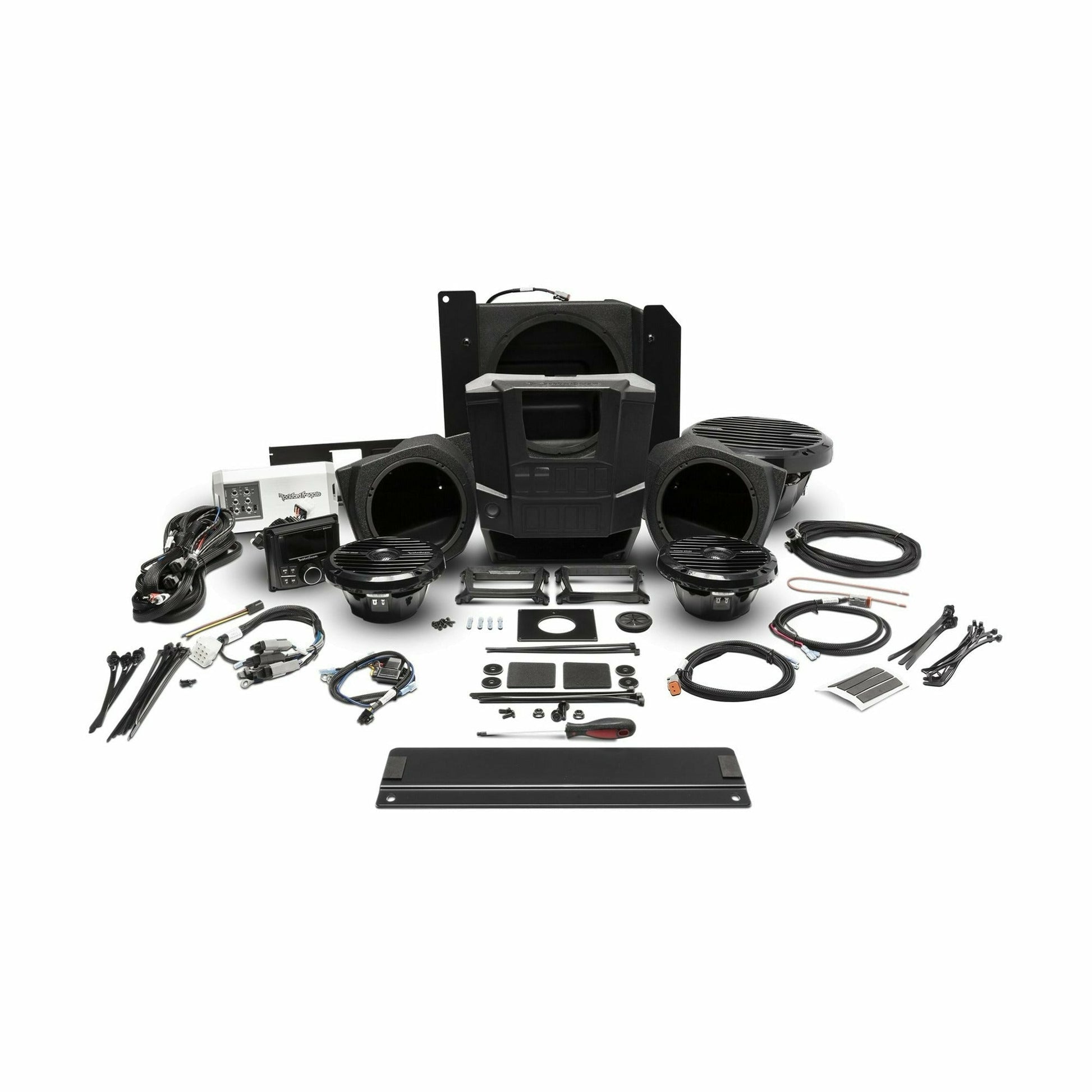 Building on the Stage 2 kit, we add our amplifier mounting and installation kit, a TM400X4ad 400-watt Element Ready amplifier and under seat subwoofer enclosure. This complete system gets you rocking out in no time whether you're working the fields or running the trails with your friends.