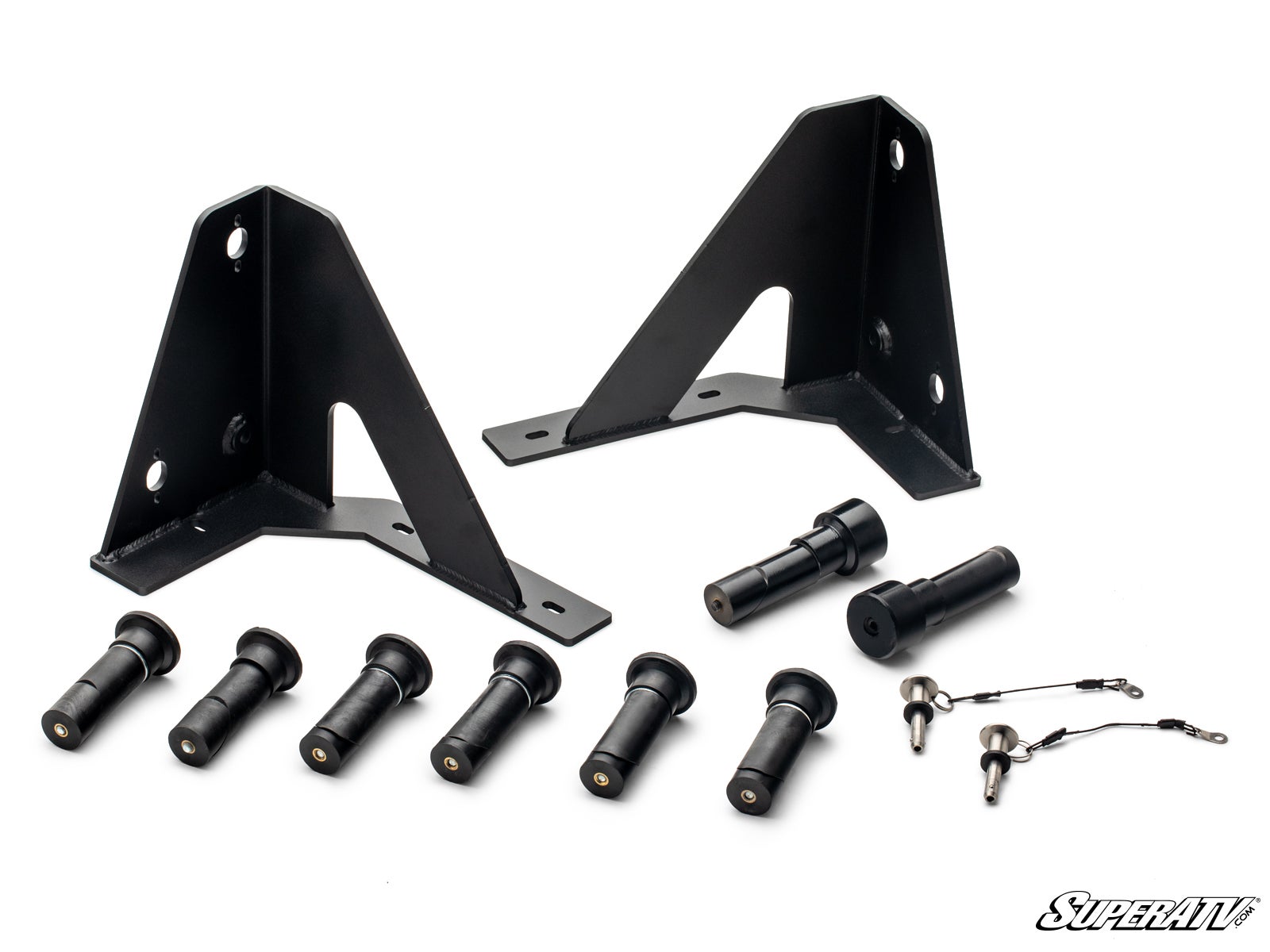 When you’re hard at work, you need your Ranger to roll with the punches. SuperATV’s Polaris Ranger Headache Cargo Rack not only shields your cab, rear windshield, and passengers from any large objects that might come flying from behind, but can be easily lowered to create a cargo shelf above the bed for more storage. Tossing firewood into the bed? No problem, our headache rack can take it. No matter what the job is, you can take it on without worrying because our headache rack has your back.