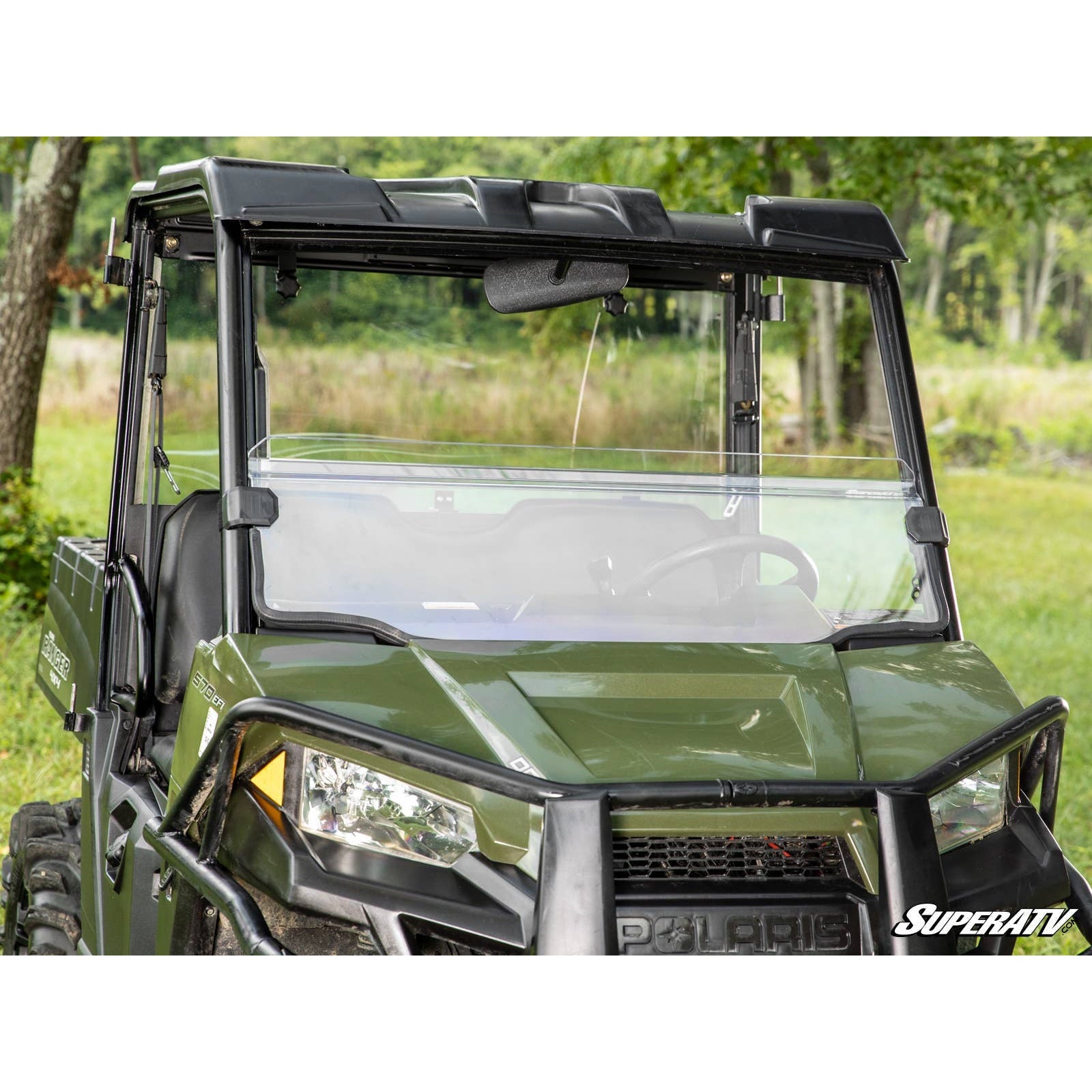 You don’t want dirt in your eyes and bugs in your teeth, but you want to keep the open cab feel. That’s what makes SuperATV’s Polycarbonate Half Windshield perfect for your Polaris Ranger Midsize. It diverts air over your head without closing you in. So whether you’re hauling wood, checking fences, or cruising down a trail, our half windshield lets you ride in comfort. And you’ll look good doing it.