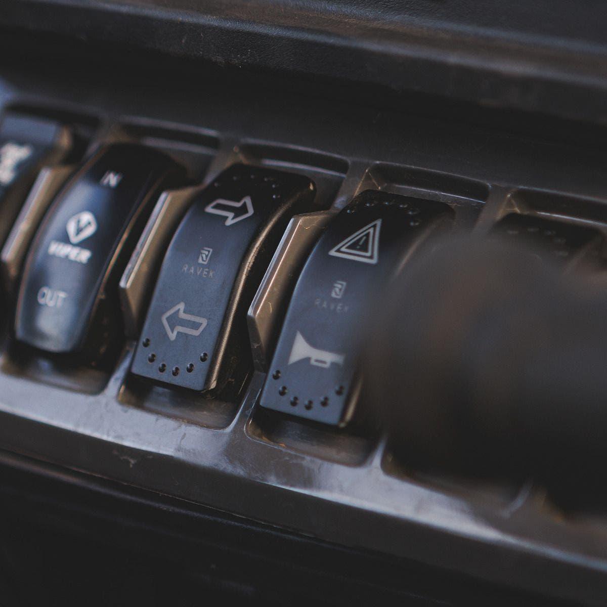 We include all items you need for a street legal kit, like a license plate holder and illuminator, and a horn. But we also give you plug & play wiring to activate the turn arrows in the Ranger ’17-‘18 OEM gauge cluster and custom, backlit “smart” rocker switches that engage and disengage with the turn signal or allow you to confidently engage the horn or hazard lights.