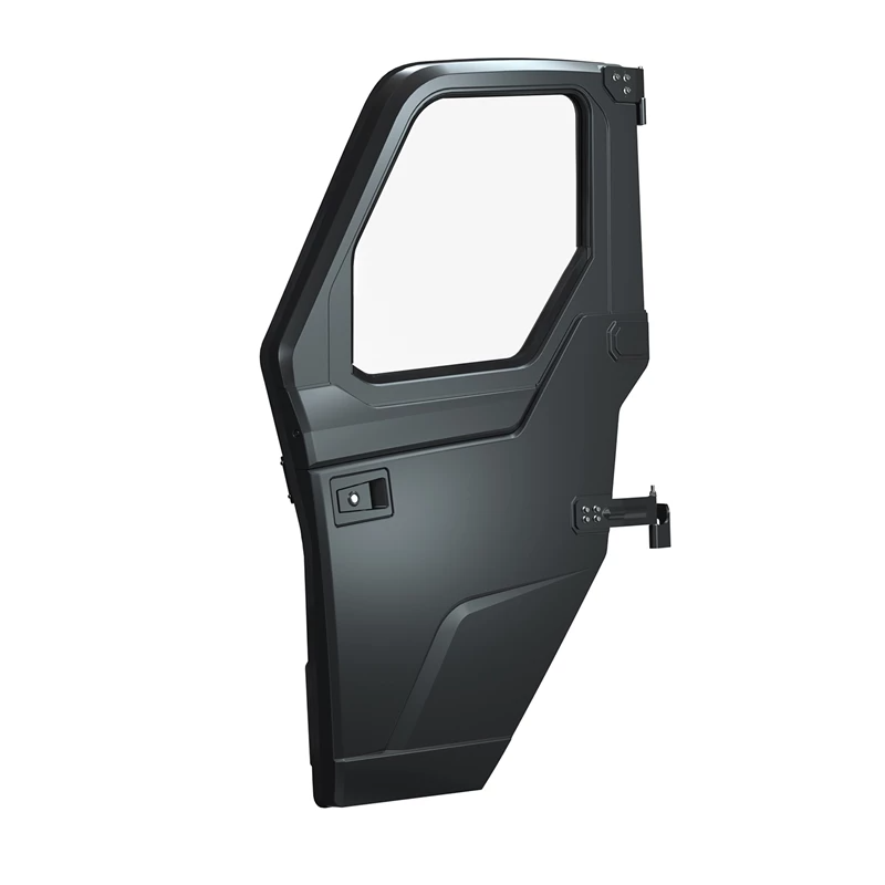 Complete your cab enclosure with the perfectly-fitting Power Window Doors. Engineered with automotive-quality style, this Polaris RANGER door system turns your cab into a quiet and comfortable complete package. These RANGER doors fit perfectly into the ROPs with predesignated mounting locations and provide quick on & off removal after initial installation. The power utv doors feature a sure-closing, tight sealing 360° gasket seal at the ROPs, and the glass windows can be adjusted infinitely with the door-mounted switch. With rear hinging, getting in and out of your cab has never been easier. The 1-inch tubular steel frame lines laminate safety glass that blocks UV rays and is strengthened by an interlayer of polyvinyl butyral (PVB). A wipe-clean soft-touch liner adds comfort and convenience and is now easier to clean thanks to a new blended material. The interior liners seal-out unwanted cab noise and deliver a premium level of fit and finish. Additional convenient features include interior and exterior door handles, power windows, and a built-in storage compartment.