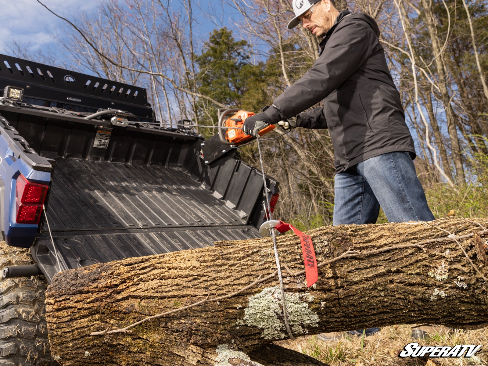 Loading cargo into your Ranger’s dump bed alone is a huge pain. Get SuperATV’s Polaris Ranger XP 900 Bed Winch—it makes loading your tilted dump bed way easier. The 500-pound winch is ideal for moving hay bales, bags of concrete, logs, mulch, trophy kills, and so much more. Just tilt the bed, attach the rope, and winch your load in. We even include two locations to mount cube lights!