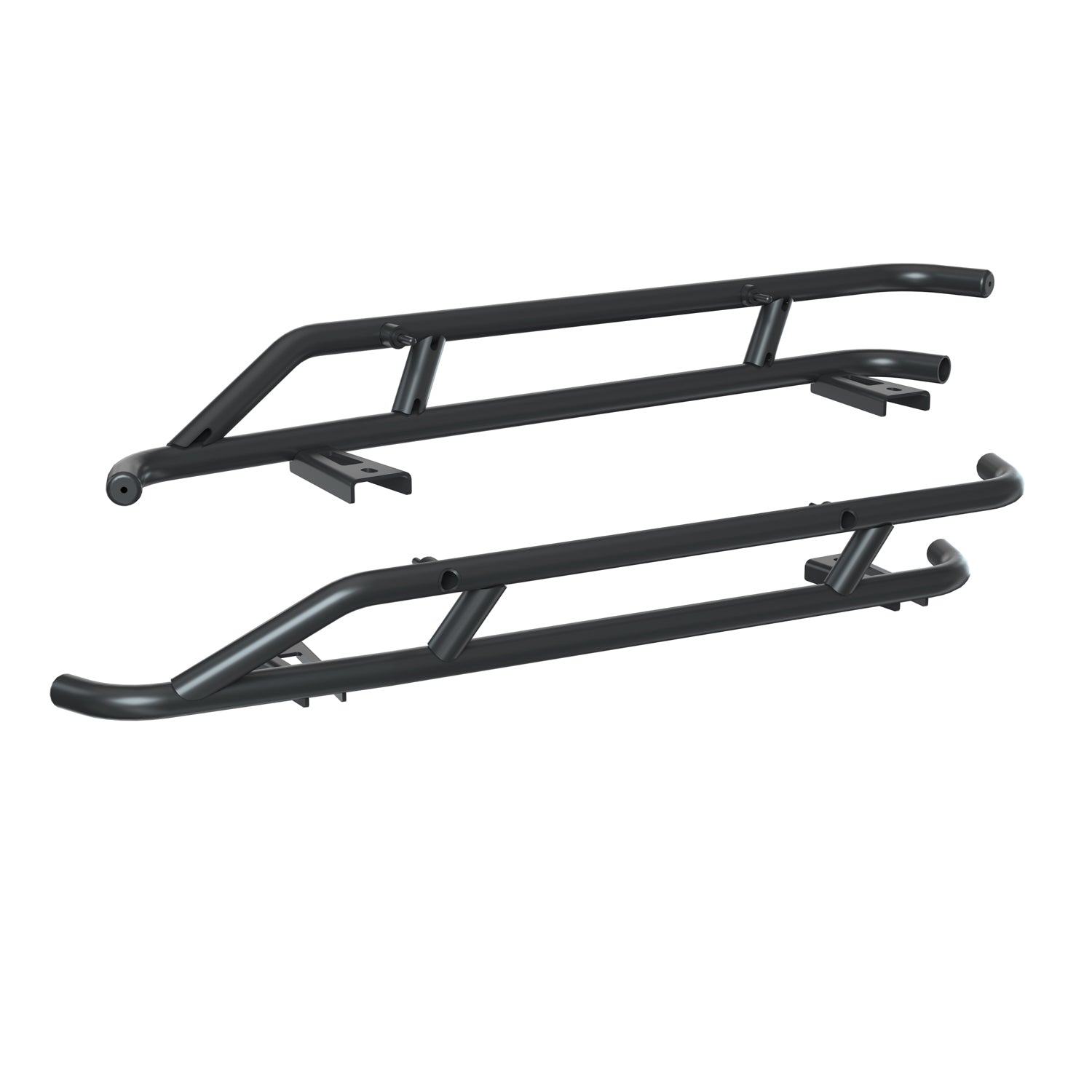 Take on anything the terrain throws at you with additional protection from these rock sliders. The steel construction provides great protection from obstacles you might encounter on the trails. Whether rocks, stumps or other debris, rest assured these rock sliders will help protect your vehicle.