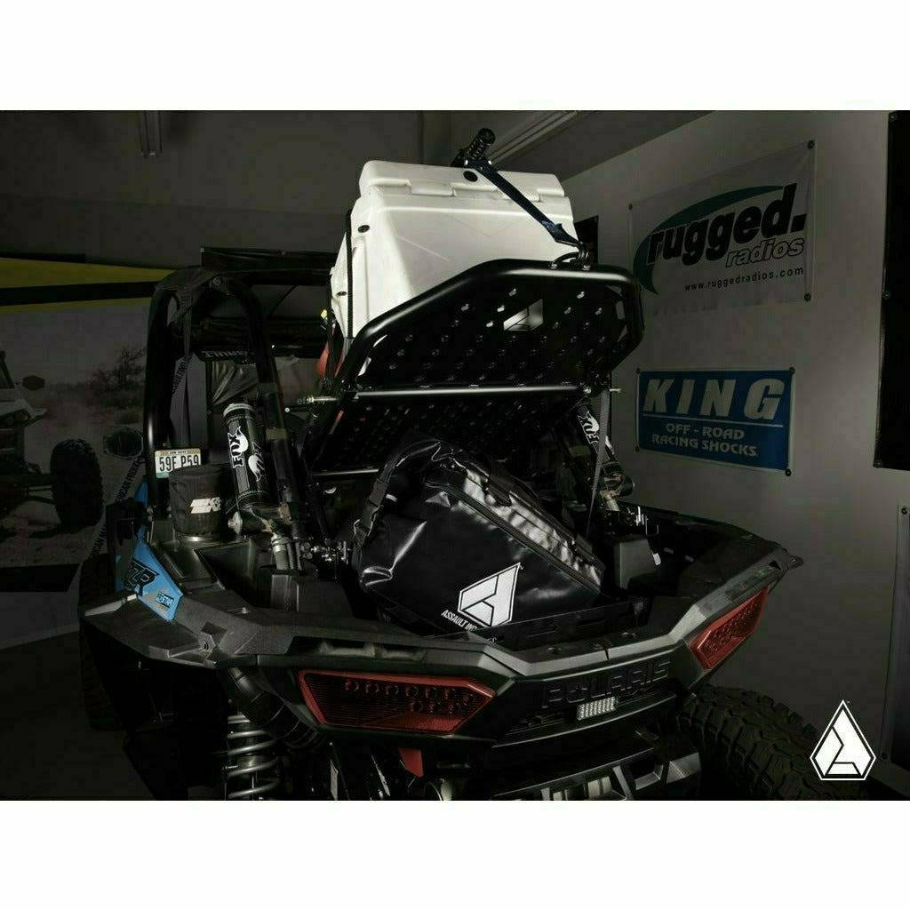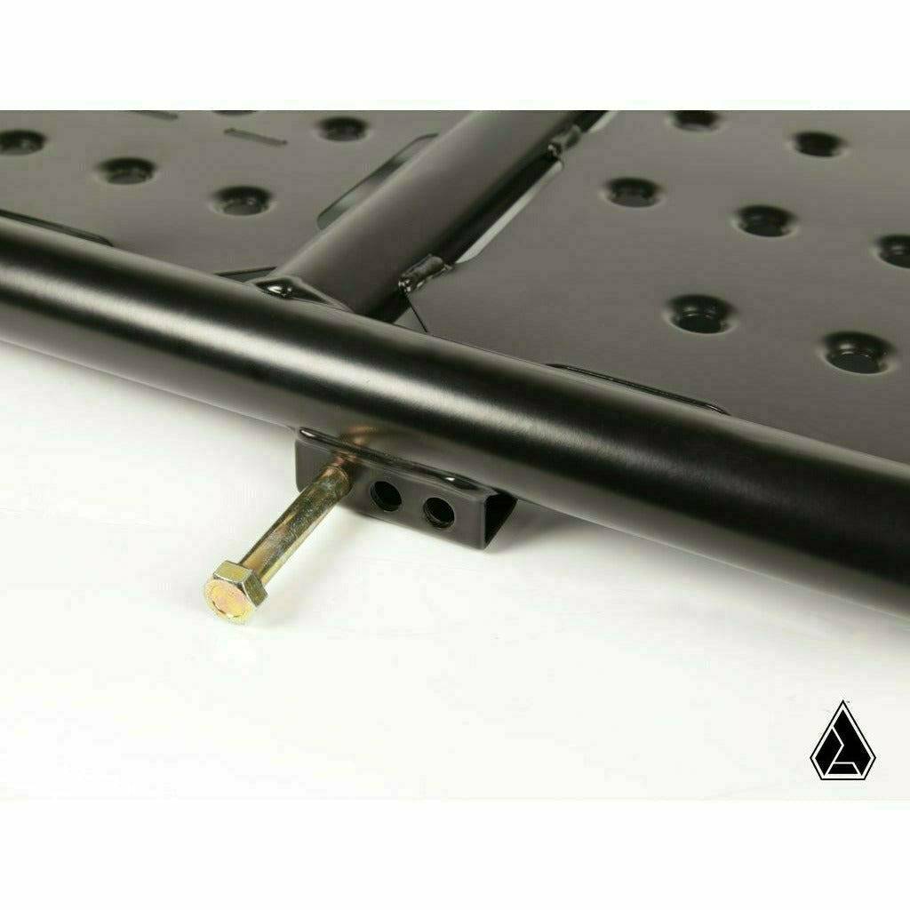 The Assault Industries Adventure Rack, formerly known as the spare tire rack, has been completely redesigned to be one of the most utilitarian products we've ever made! The original spare tire rack was a pioneering development that enabled riders to effortlessly move their tire out of the way to access bed contents and securely lock down to the bed providing adequate rearview clearance. The new design offers the same great functionality as before but with many changes and upgrades.