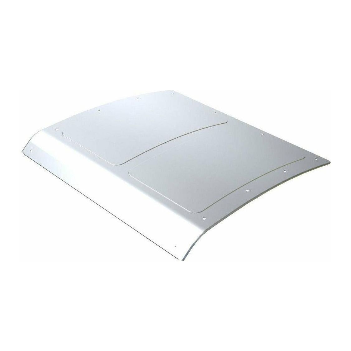 Precision fit aluminum roof. Design features 2 bead rolled squares. Fits our RZR "Competition Cage" roll cage for the Polaris RZR. Comes with all mounting hardware, 10 Dzus mounting tabs, springs, buttons, and rivets. (tabs must be welded on by a qualified welder)
