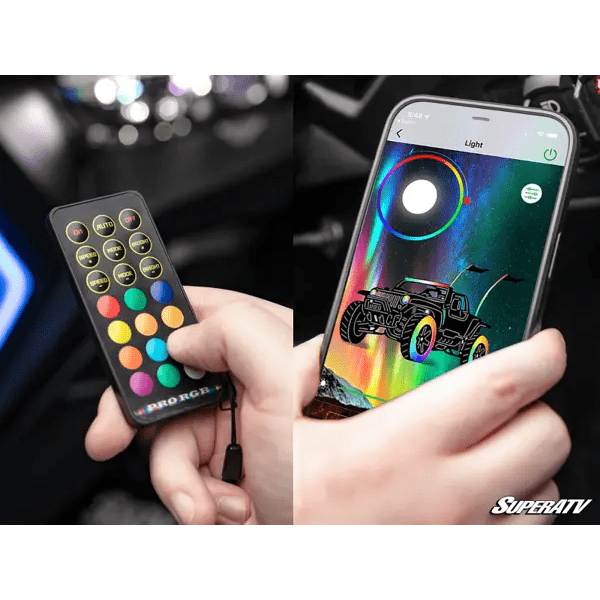 These lights can integrate with your sound system and SuperATV whip lights, so they can all sync up to your music. Just download the app on your phone to get full control of all your RGB lighting.