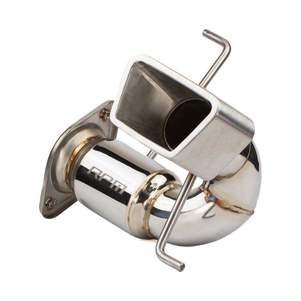 This muffler was designed for those who like LOUD. This uses a 4" bullet muffler with RPM's signature internal "Baffle Blade". This is a internal, unrestrictive baffle that creates the needed back pressure the inline 2.0 liter Pro R needs for optimal performance. This entire muffler weighs in at only 4.5LB's and is designed and built with the racers in mind. The OEM gasket is used & bolts into the factory location This RPM Race Pipe is built from polished 304 stainless and is a full 3" pipe. This Muffler uses and includes the signature RPM, factory appearing 3" tip!