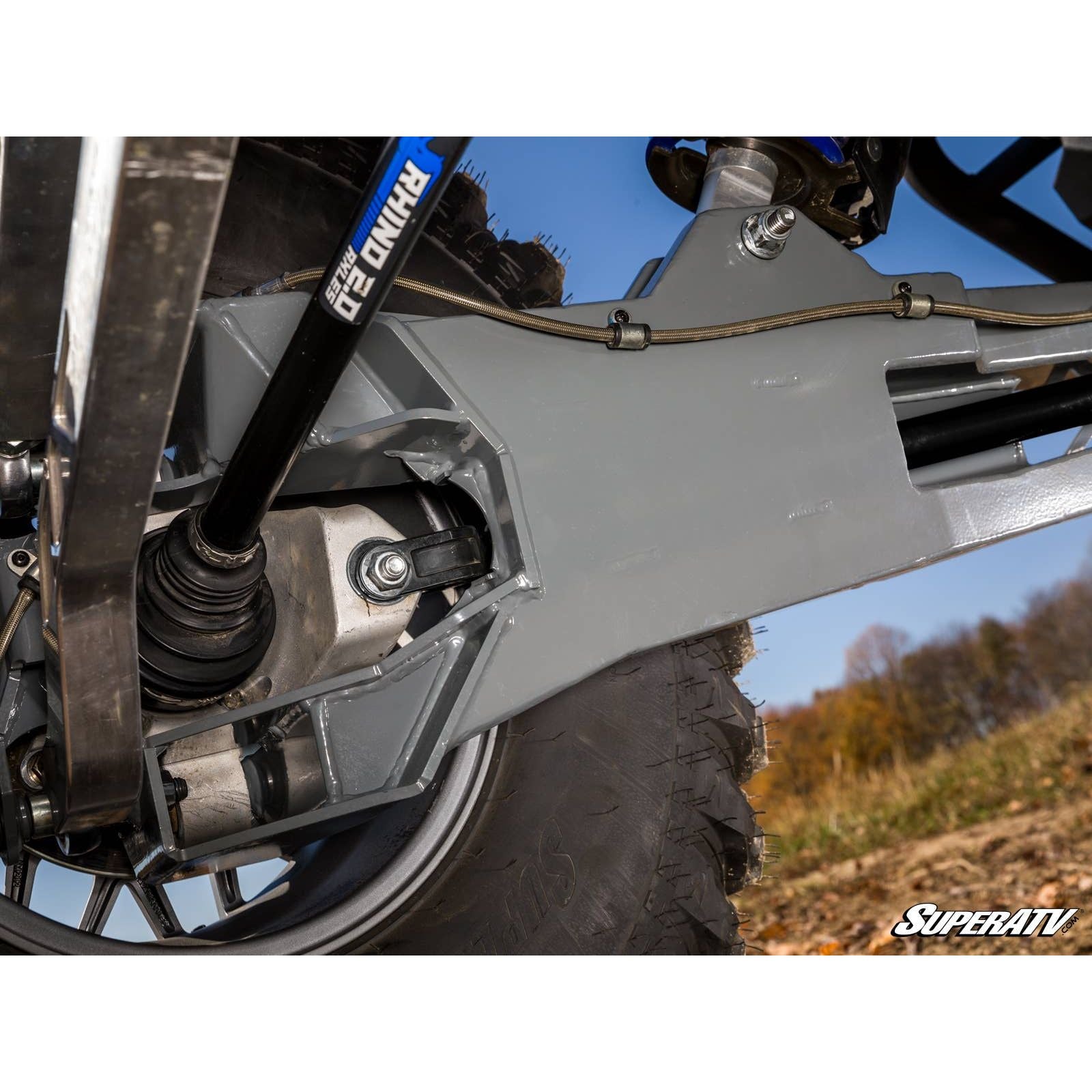 If you want the most strength and durability possible, you need to upgrade to our Pro R Trailing Arms. They’re made with an advanced steel alloy that’s incredibly strong and outperforms the stock steel. The hand-welded plates that make up these arms are up to 1/4” thick in key areas like the hub and mounts to prevent failure. It doesn’t get any tougher than SuperATV toe rods with trailing arms.