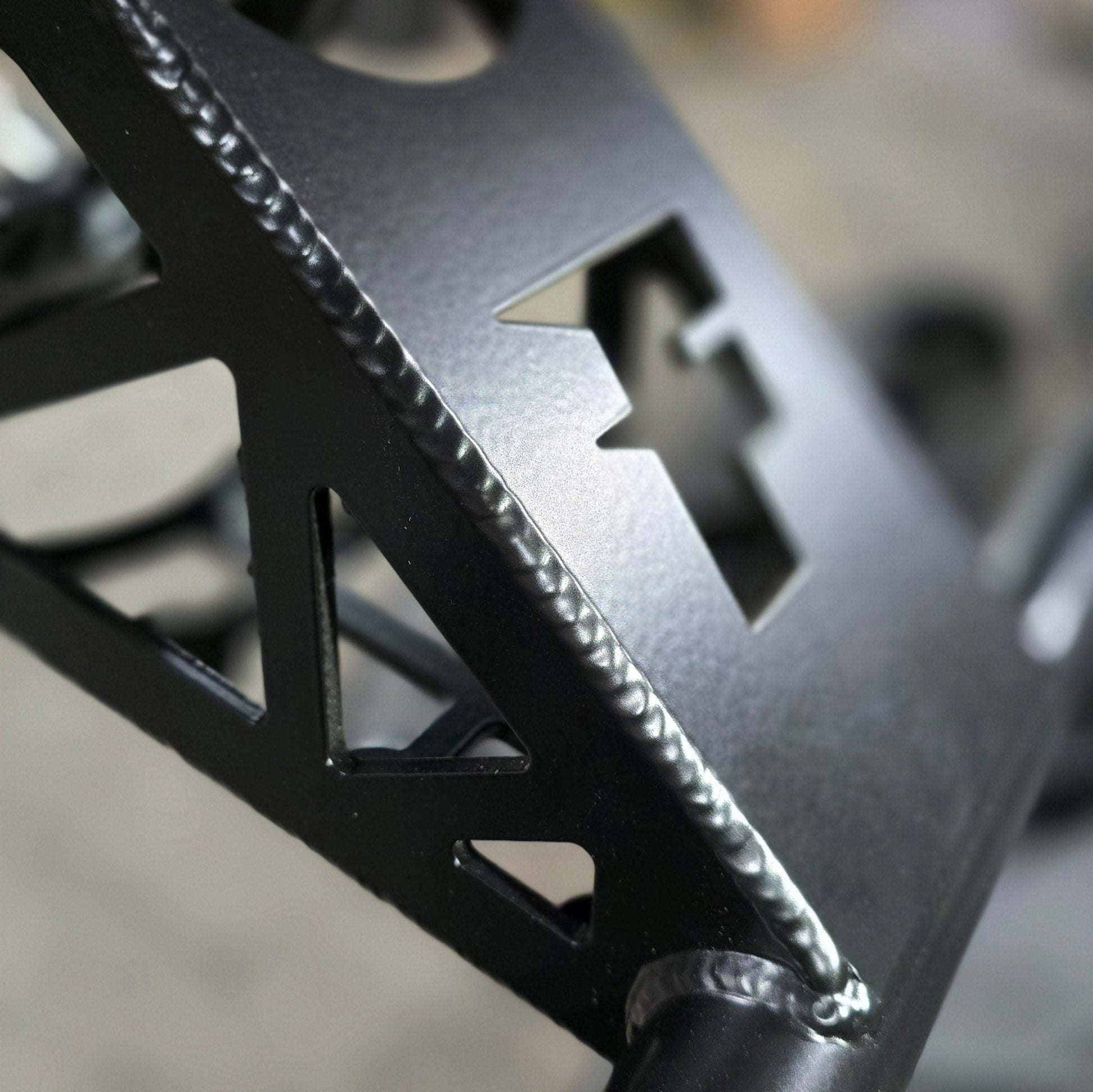 Our swing out spare tire carrier utilizes a dual taper bearing, which means this can take a ton of weight, perfect for UTVs running 35" tires. With a 5x4.5 bolt pattern laser cut into our hub face, this will allow wheels to be secured with confidence. And once the spare tire carrier is opened, you get full bed access.