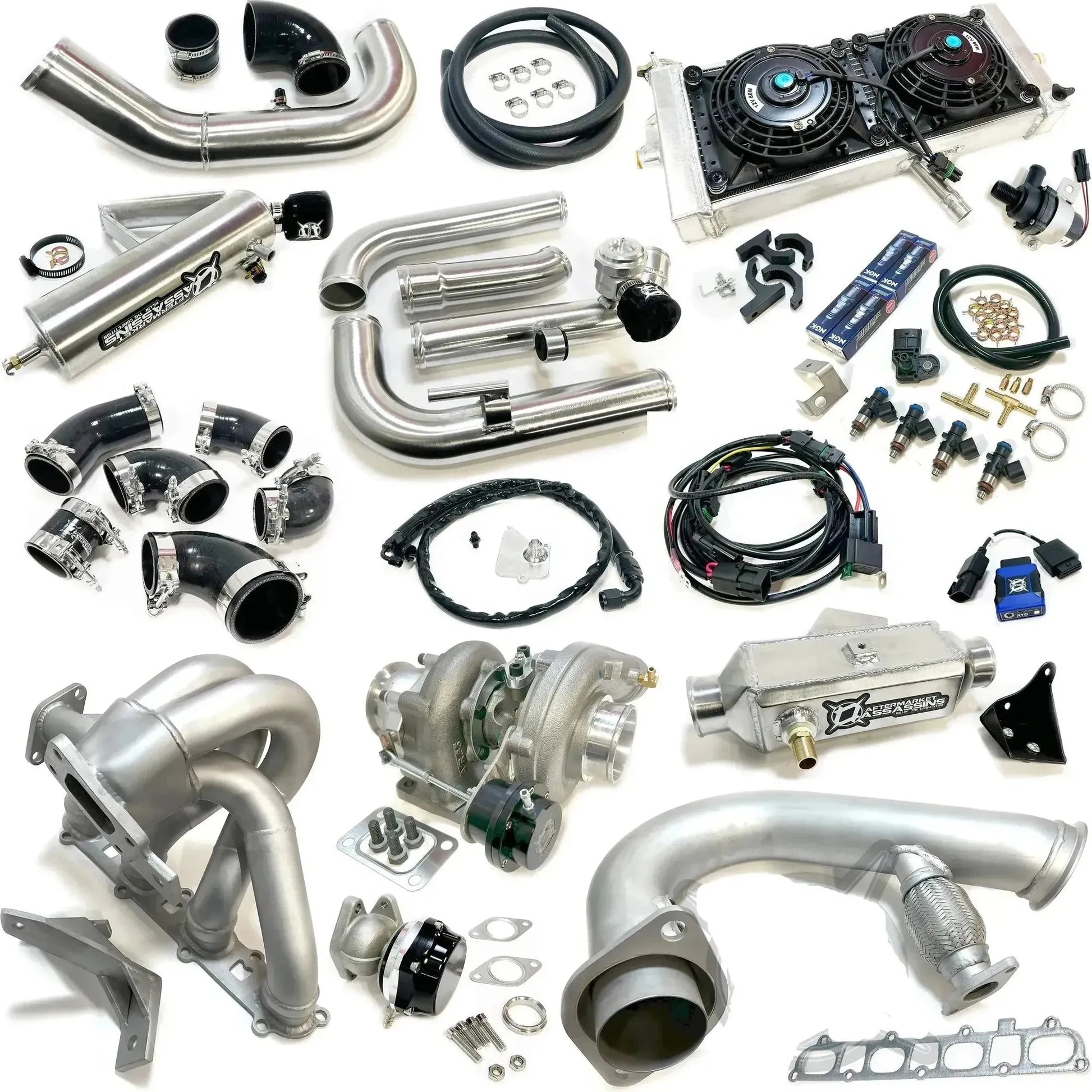 Our water to air intercooled setup is a true bolt-on kit that sets the standard for Pro R turbo kits and include top notch tuning, clutching, and all the required parts necessary to properly add boost to your Pro R.