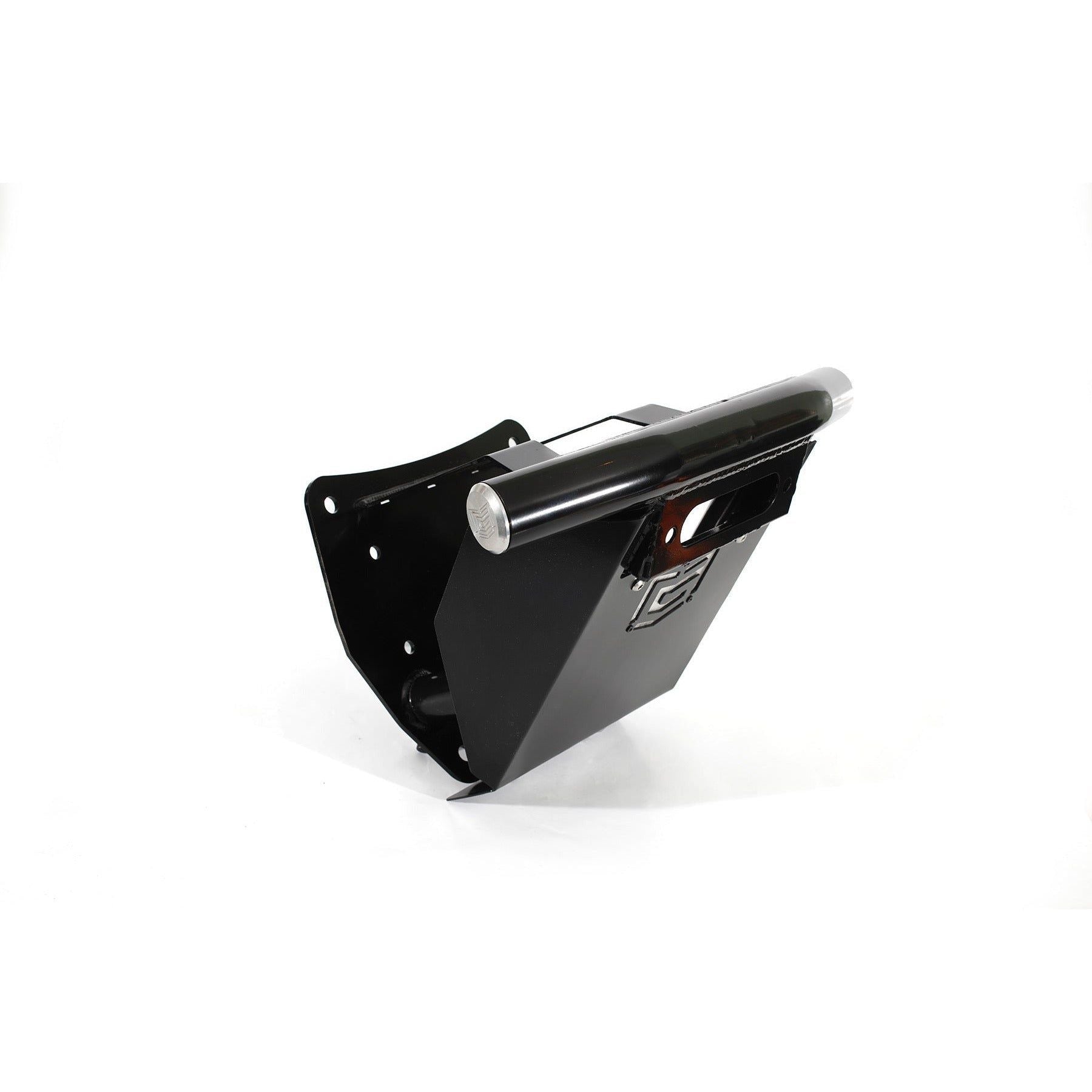 The tubing is constructed with 1.75” steel tubes and 3/16” steel plate for the winch mount. 1/8” steel plate reinforced for the fairlead mount! Everything is CNC cut and bent for precision & perfect fitment. The skid plate is made from 5052 aluminum to offer flexibility if it is hit with any objects on the trail. Also comes with our stylized 6061 billet tube caps for a bit of added flare.