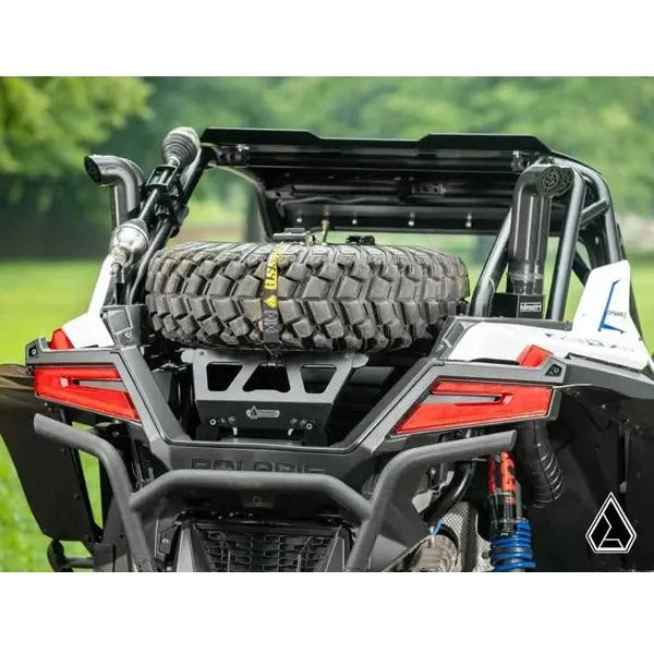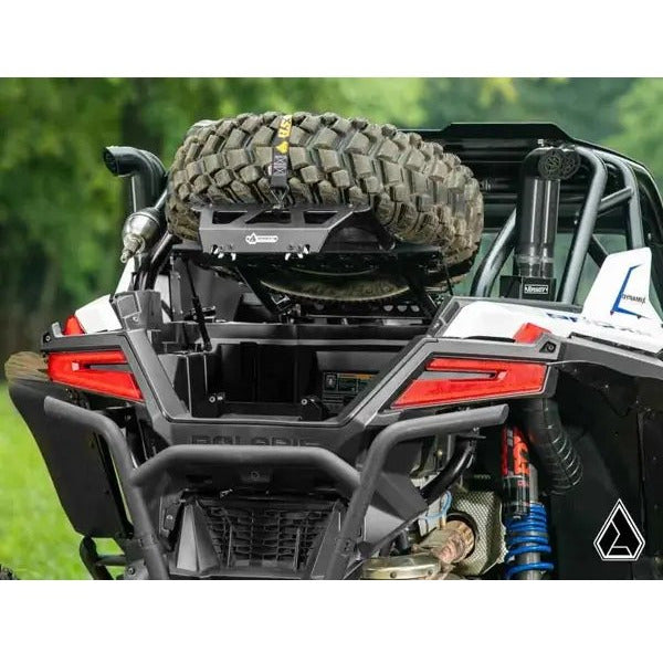 Our heavy-duty steel construction allows you to carry a 32" tire, and our Y-strap will hold it into place no matter how rough your ride gets. And thanks to our clever design, you can easily access your RZR PRO XP's storage, so the enemy will never catch you with your guard down.