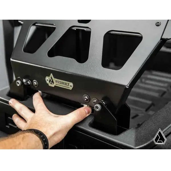 Riding on rough terrain can come at a cost. And that's the last thing you want when trudging through enemy territory. Stay prepared by adding Assault Industries' Adventure Rack to your Polaris RZR PRO XP. It's the best solution for carrying up to a 32" spare tire. And thanks to our clever design, you can easily access your cargo space. This adventure rack is the lifesaver you can count on when the trail takes you down.