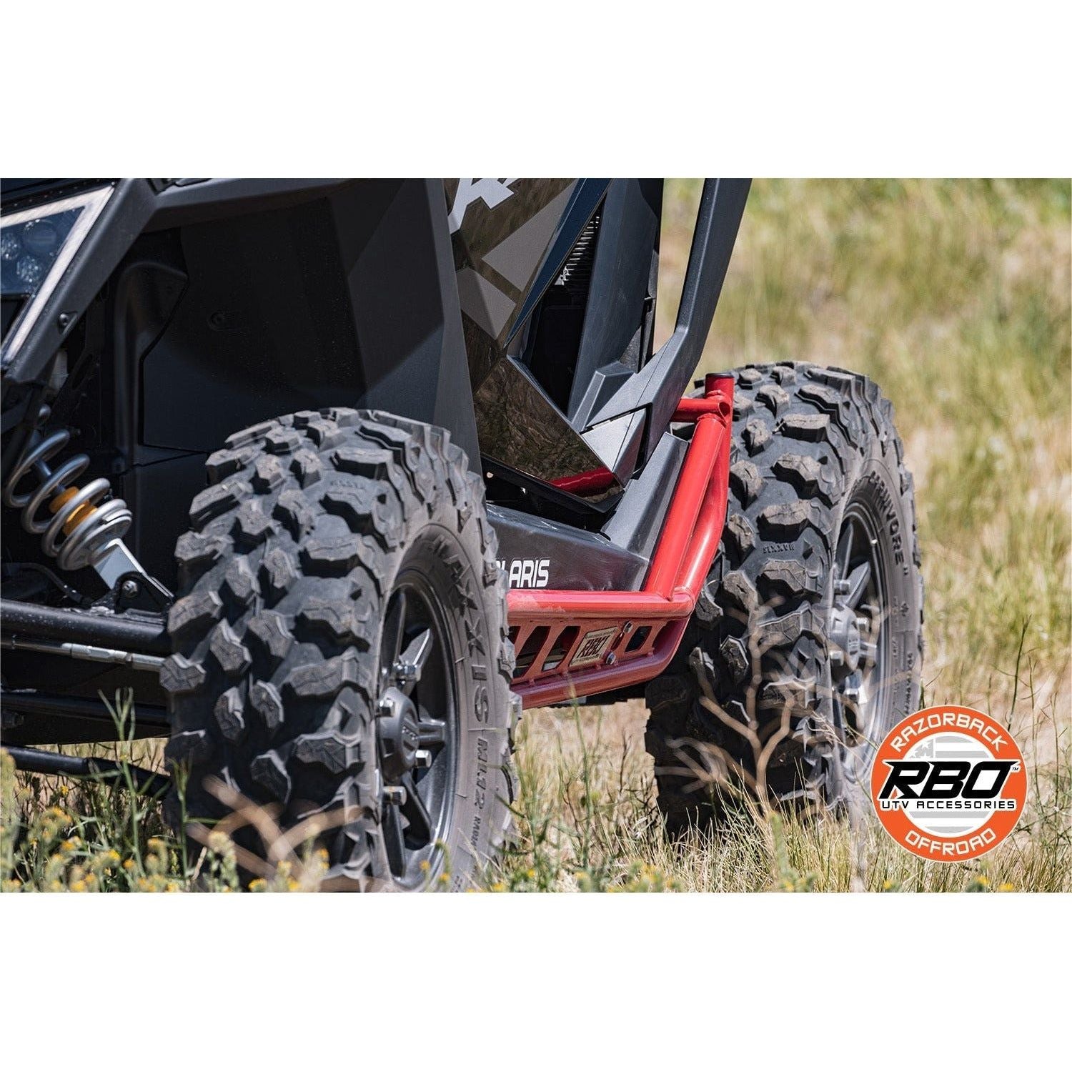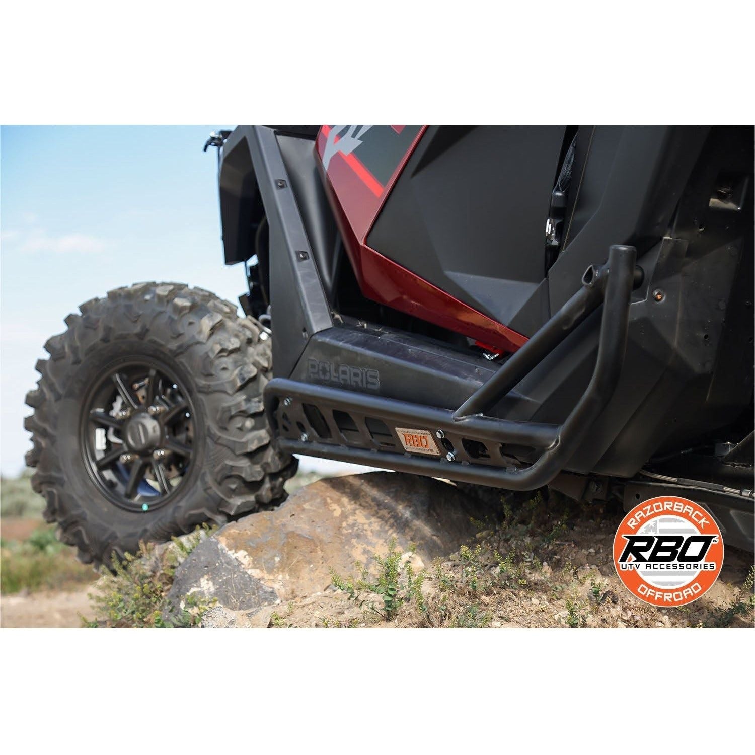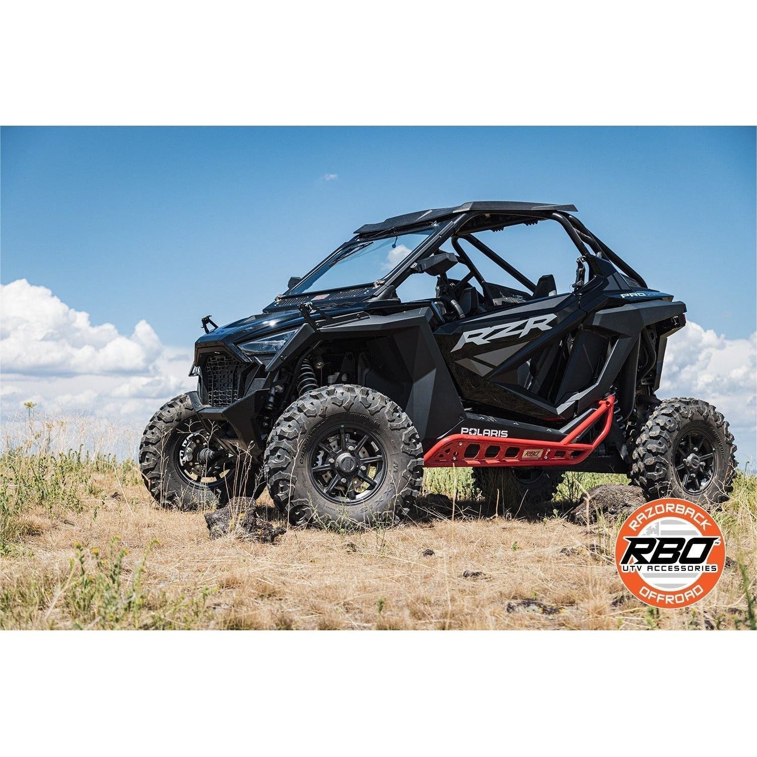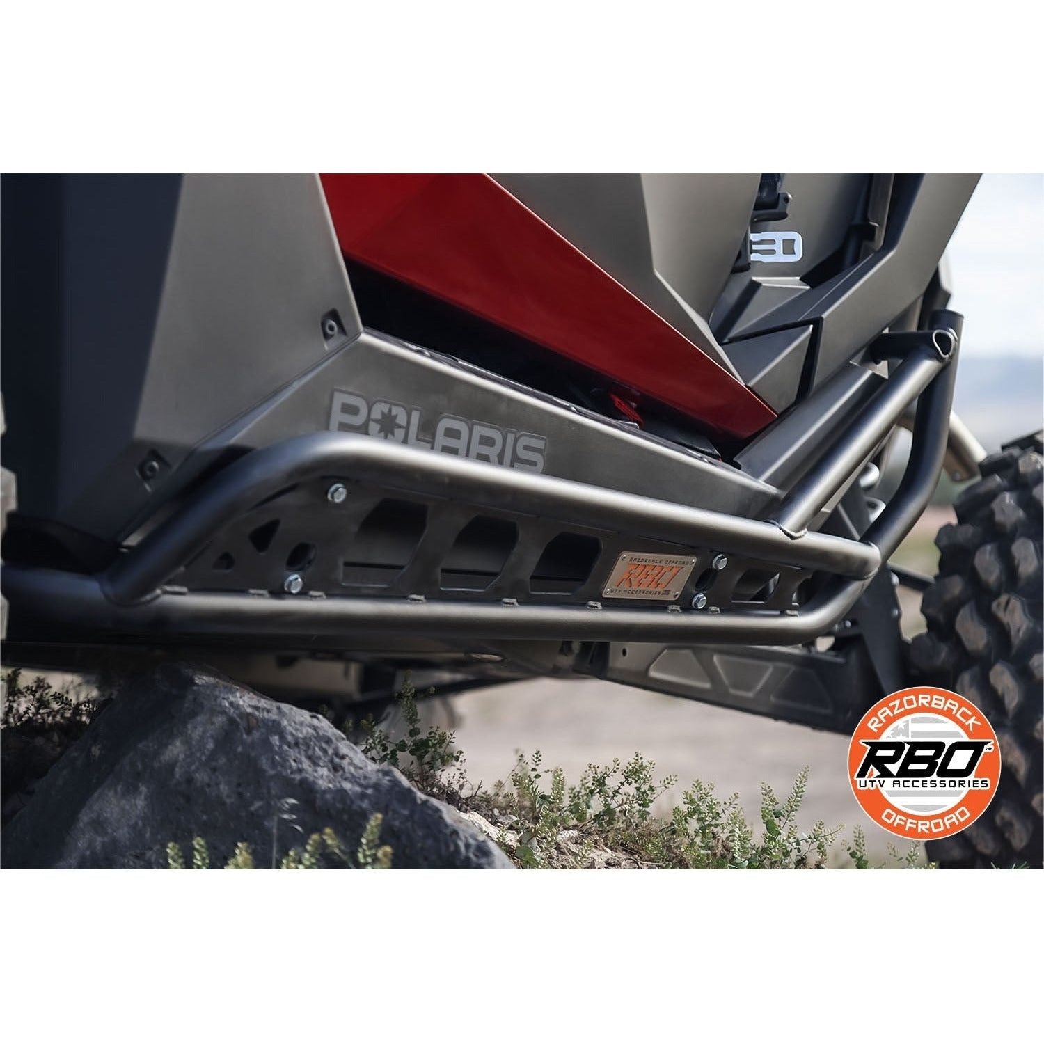 These new Polaris RZR PRO Series Rock Sliders we developed for the Polaris Pro Series line up were designed to deliver everything you would expect from a performance machine like the Polaris RZR Pro XP. Not only do they make your Pro Series Polaris look good, they help you slide over rocks, and protect the bottom of your Pro Series. They’re also incredibly strong. These rock sliders are able to be used as a jacking point to lift your machine to change a tire or to get out of a bad spot. Also, they’re incredibly easy to install. Our Polaris RZR PRO Series Rock Sliders check all the boxes.