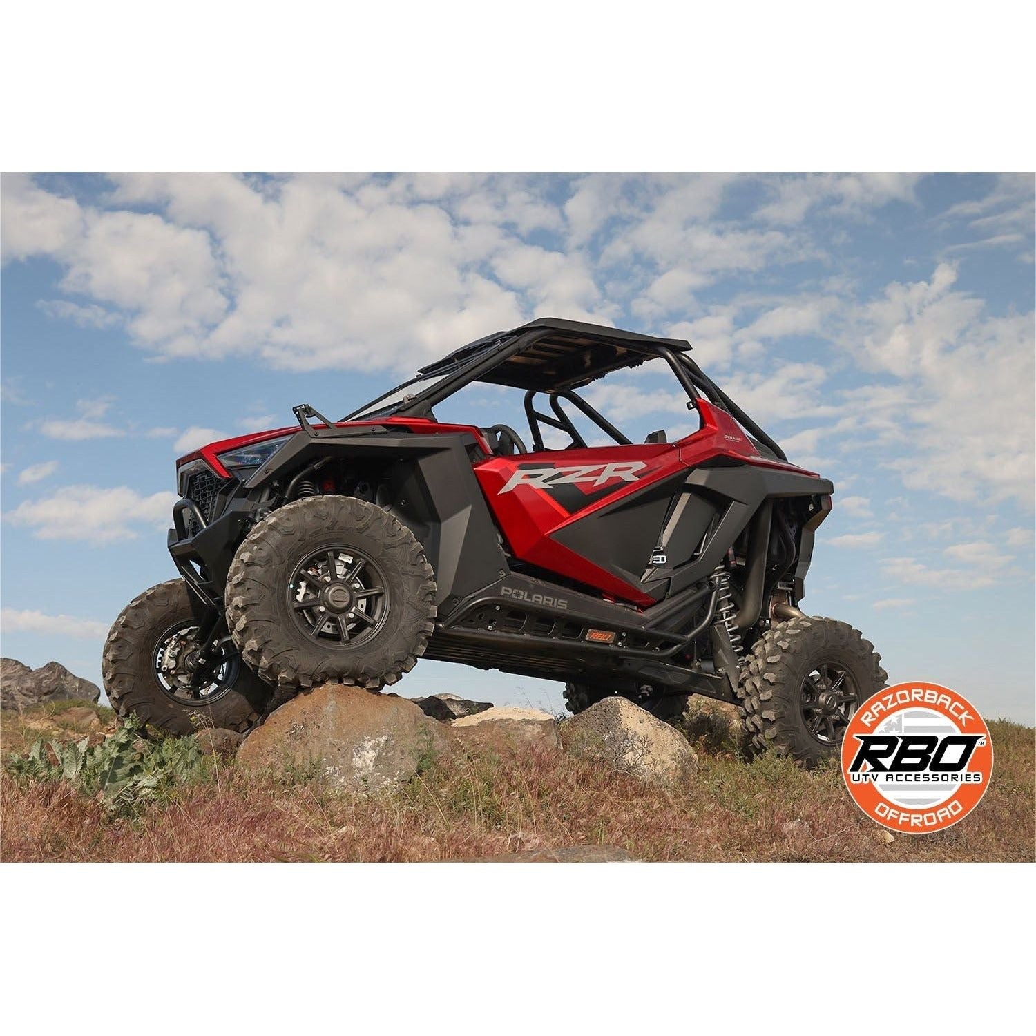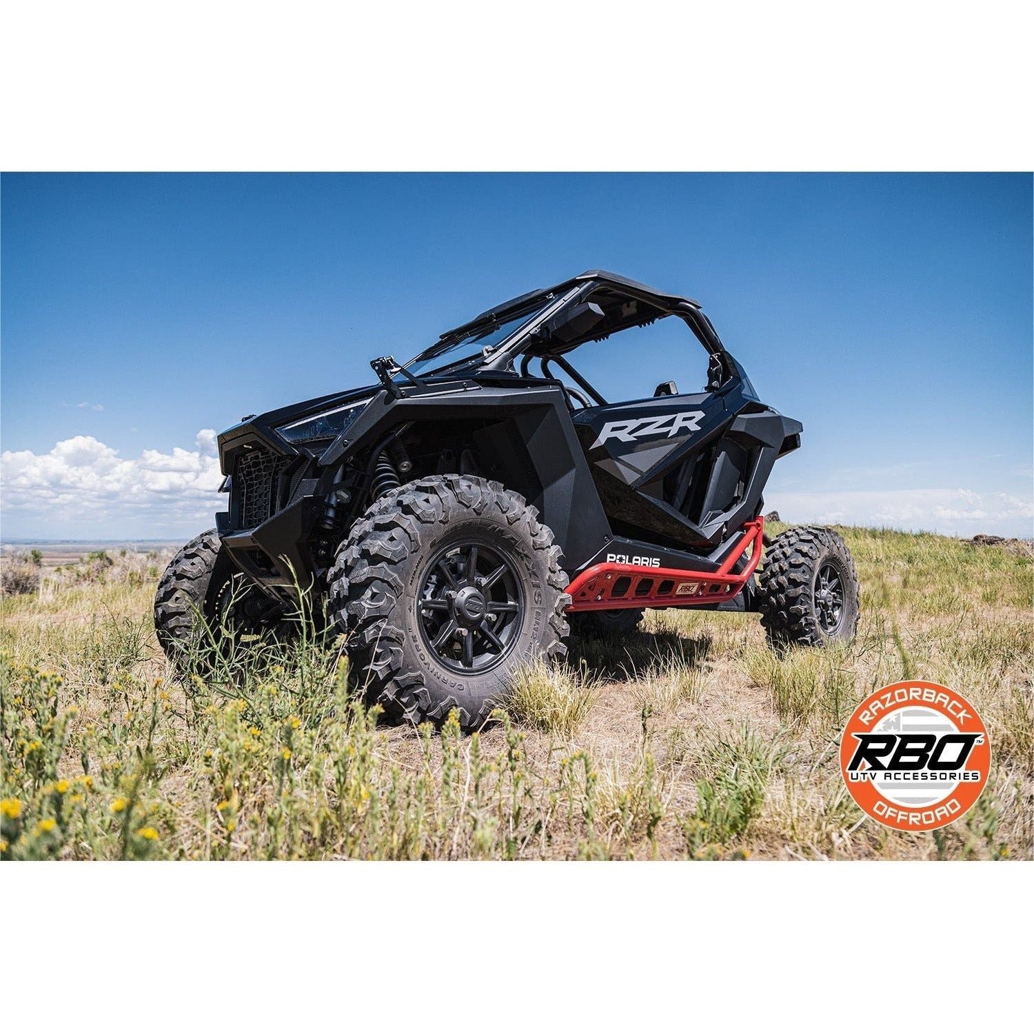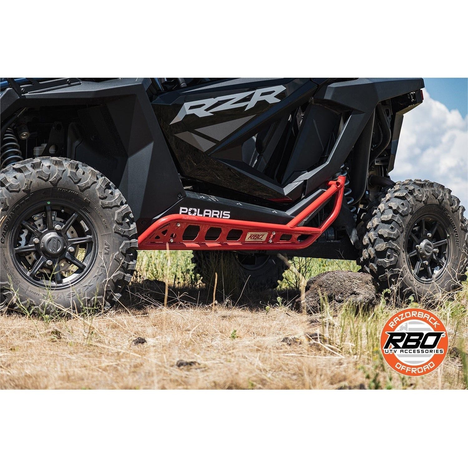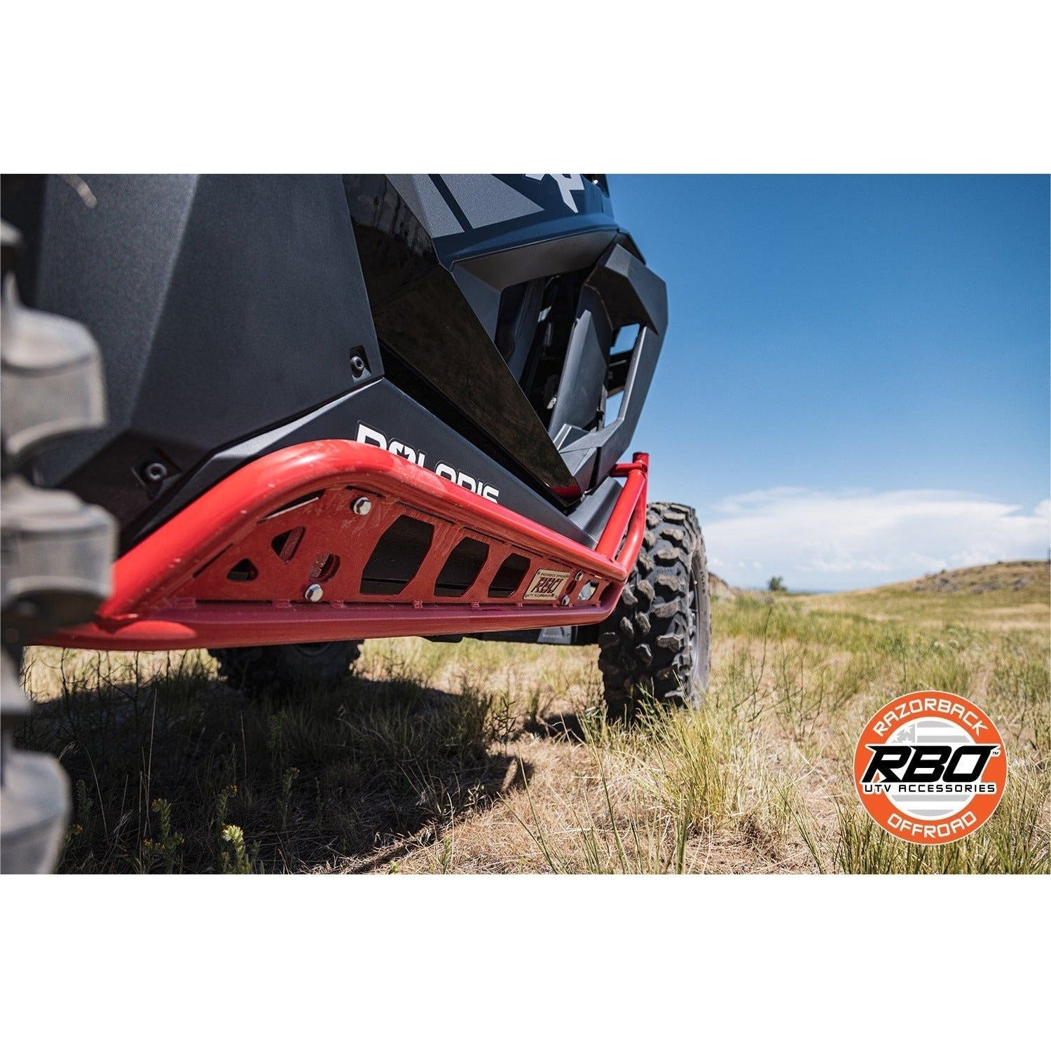 These new Polaris RZR PRO Series Rock Sliders we developed for the Polaris Pro Series line up were designed to deliver everything you would expect from a performance machine like the Polaris RZR Pro XP. Not only do they make your Pro Series Polaris look good, they help you slide over rocks, and protect the bottom of your Pro Series. They’re also incredibly strong. These rock sliders are able to be used as a jacking point to lift your machine to change a tire or to get out of a bad spot. Also, they’re incredibly easy to install. Our Polaris RZR PRO Series Rock Sliders check all the boxes.