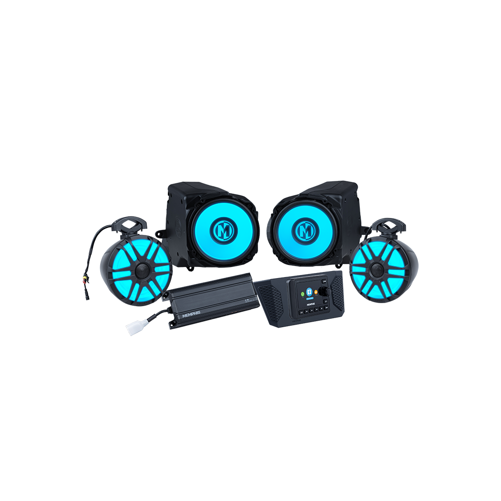 Memphis Audio Direct Fit OEM Audio Systems allow you to create the perfect audio system for your Side-By-Side. PAK4 Audio systems take performance to the next level by adding front and rear speakers with additional amplification for maximum audio performance. The front speakers are engineered specifically to fit your exact make and model vehicle with zero customization required. The rear speakers are MXA62PS powersports pods providing rich full sound for your side-by-side. The PAK4 level provides an MXA300.4 marine grade amplifier to power the front and rear speakers for unmatched audio performance. This system is equipped with an SMC3 head unit. This 3″ full color unit features multiple zones for future expansion of your audio system as well as a video input to display a backup camera directly on your head unit. The PAK4 audio system is a perfect high end audio system for anyone who likes their music LOUD and wants to be heard on the trails. PAK4 audio systems require zero customization to your vehicle and include everything you need to outfit your side-by-side with impressive audio performance. Get a complete Polaris RZR PRO audio upgrade easily with this direct fit OEM Polaris RZR PRO audio system.