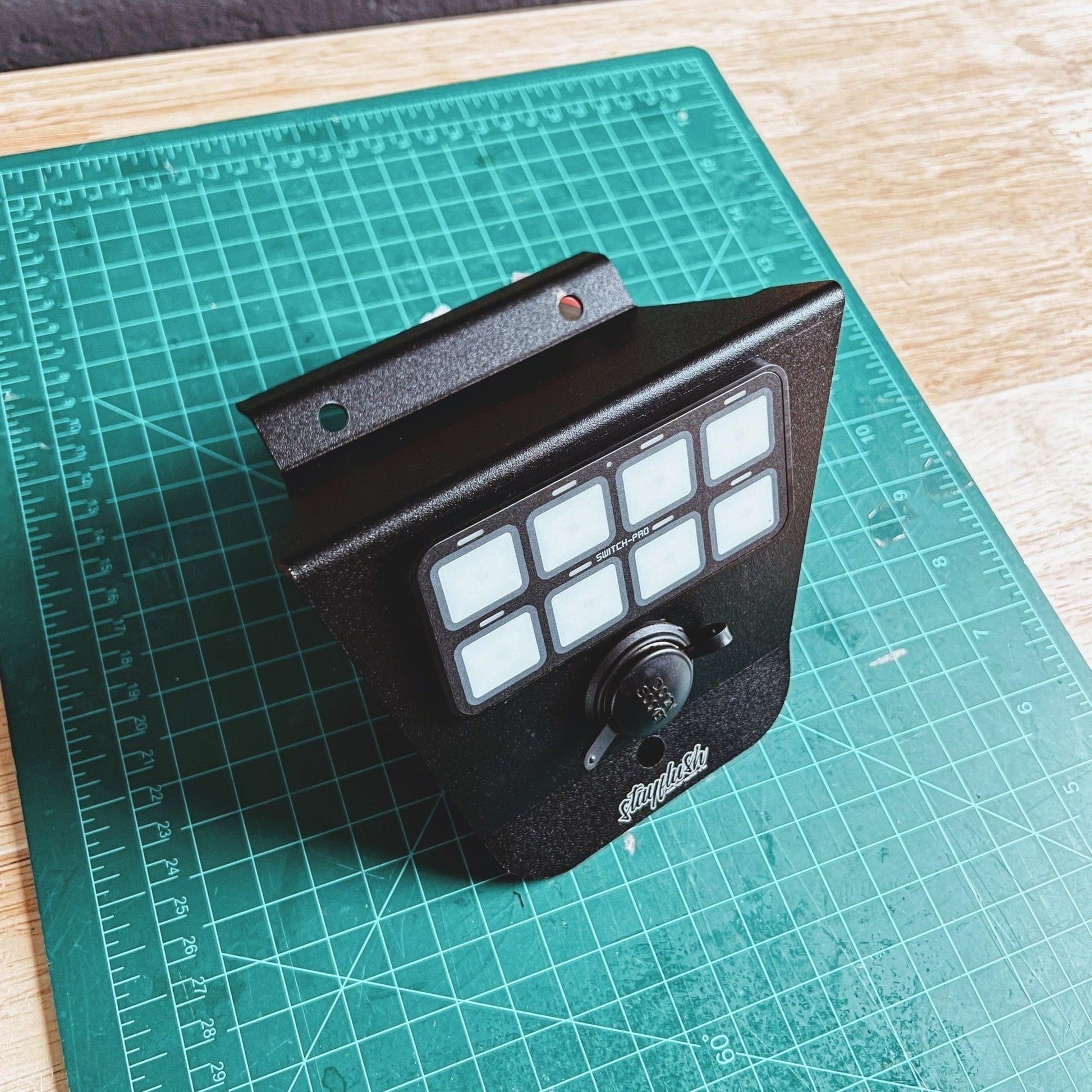 Looking for a spot to mount the Switchpro 8 and still look like it came from the factory! This design is for you! No cutting needed! Mounts with 3 bolts and sites right in the lower section of your dash. Also still able to keep your 12v accessory plug Small space big things! Made from aluminum and powdered with that tough coat blending in with your dash!