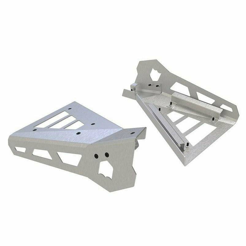Pro Armor A-arm guards have been designed to shield your RZR Pro XP & Pro XP 4 from rocks, branches or anything else that you might encounter out on the trail or track. Featuring recessed areas for the included hardened bolts our A-Arm guards help to eliminate A-Arm damage while adding a more aggressive look to your RZR. Our guards are made from strong .125 thick aircraft aluminum alloy and are a necessity that any serious enthusiast needs. Let Pro Armor protect your RZR Pro XP while you enjoy the adventure. Front A-Arm armor comes in brush aluminum finish and sold as a pair.