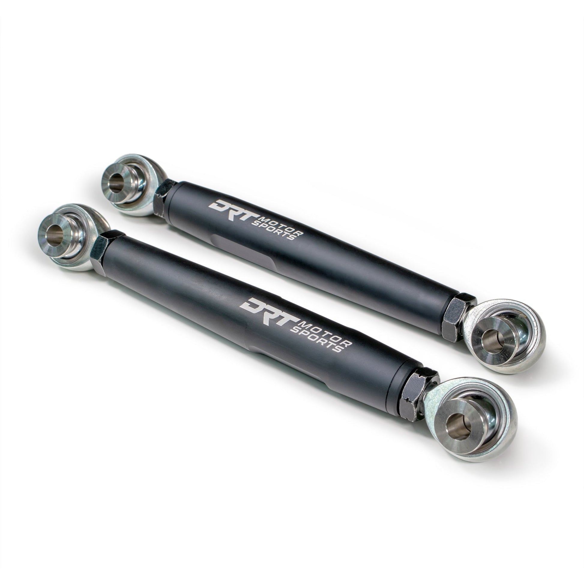 The DRT Motorsports Billet Aluminum Adjustable Barrel Rear Sway Bar Link Kit is designed to increase the strength and adjustability of your sway bar assembly in a heavy-duty and stylish package. The sway bar links also increase rigidity and reduce lateral suspension flex that is transferred from the trailing arms to the sway bar. These sway bar links are manufactured in the USA on state-of-the-art CNC equipment of aerospace-grade aluminum. Complete replacement set of sway bar links featuring improved strength and durability over stock.