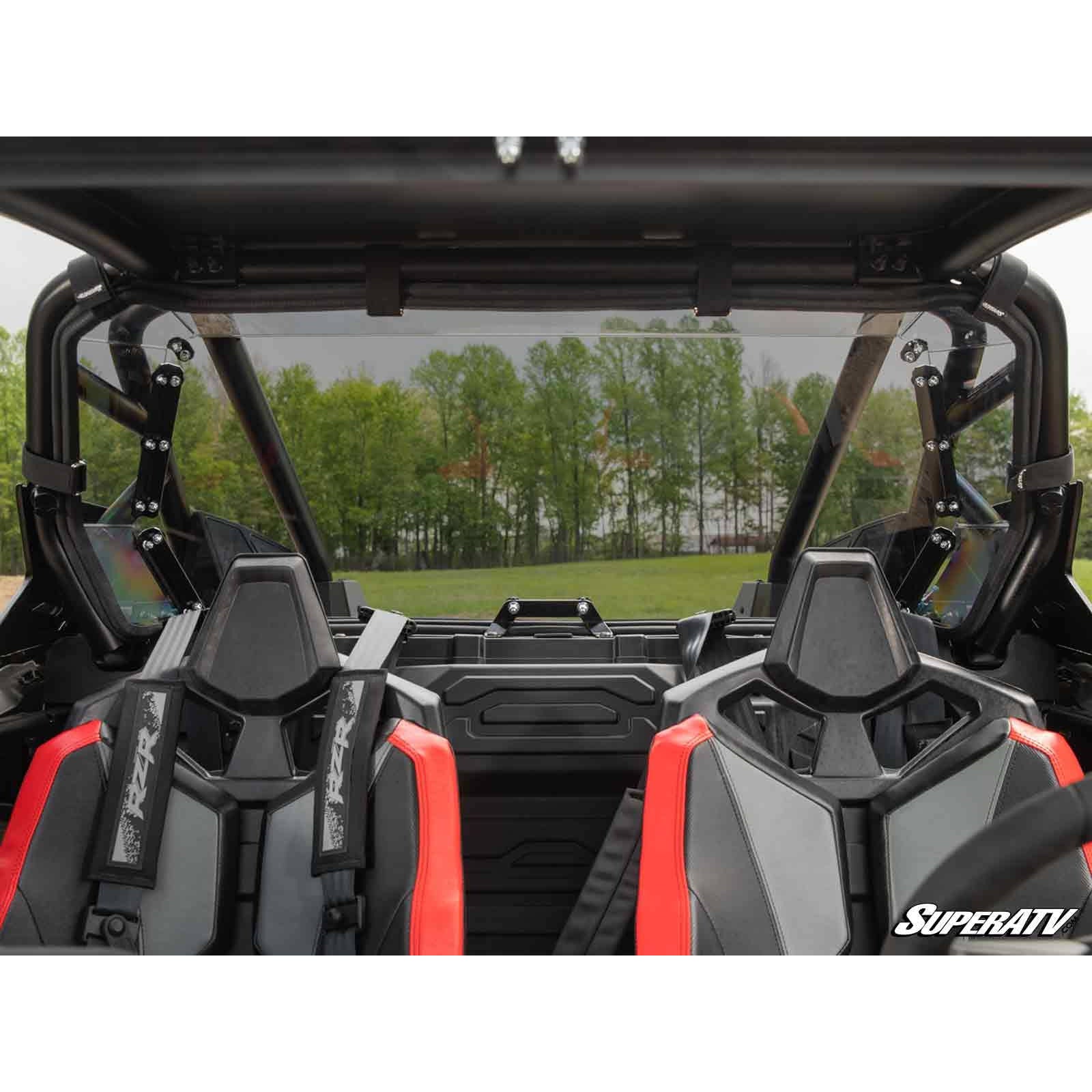 Keep your cab clear of wind, rain, and flying debris by installing SuperATV’s Rear Windshield on your Polaris RZR PRO XP. Whether you’re working hard on the farm or taking a leisurely ride down the trails, nobody wants to deal with leaves and dust being sucked into their machine. A rear windshield is also a great step toward giving yourself a comfortable full-cab enclosure, and it eliminates that annoying suction sound that happens when you run a front windshield by itself.