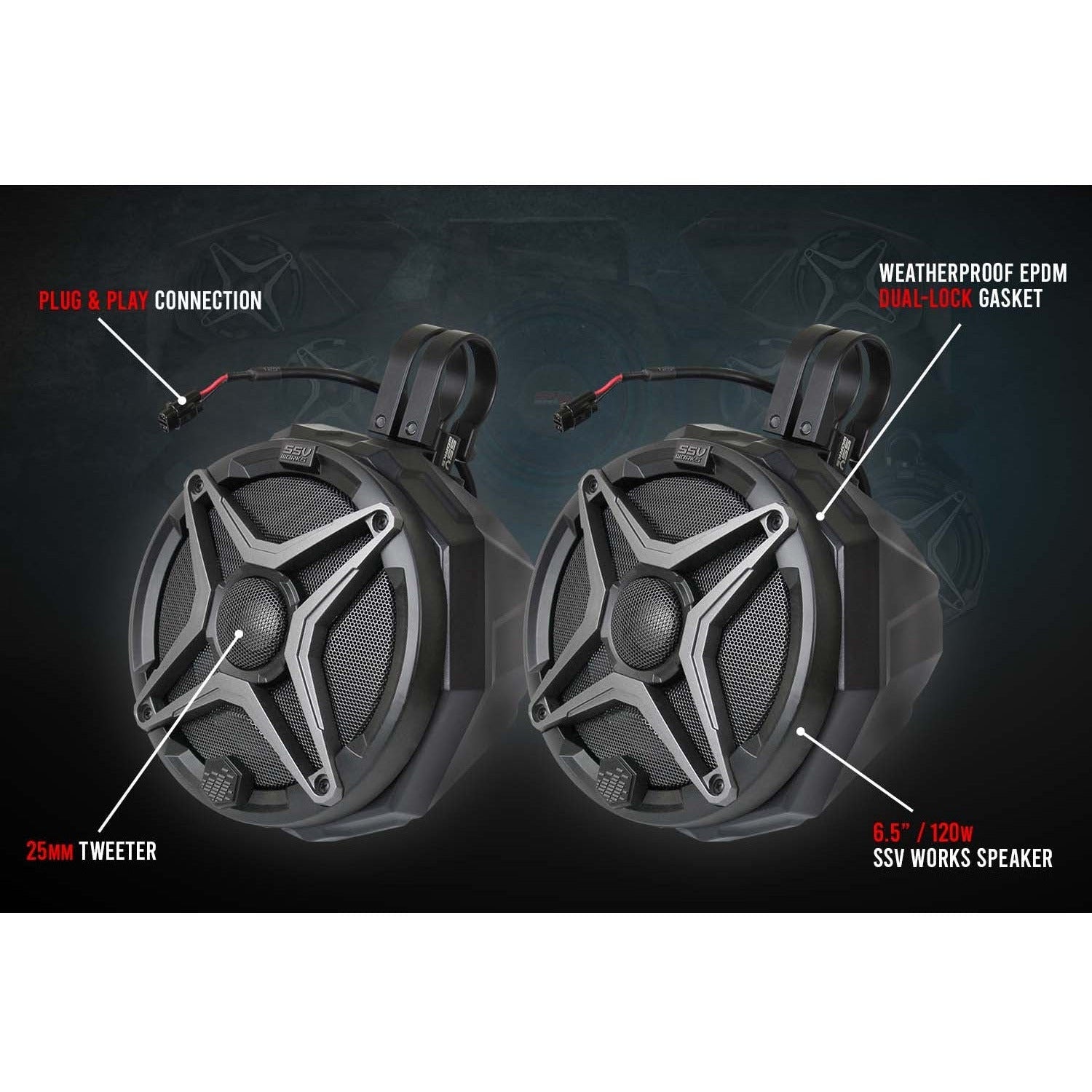 SSV Works is the first company to integrate audio in side-by-sides, we have pioneered all the great features you find in audio-systems today. From plug-&-play kit solutions, true weatherproof ratings, to factory fit and finishes, SSV has set the standard in UTV audio from the very beginning!