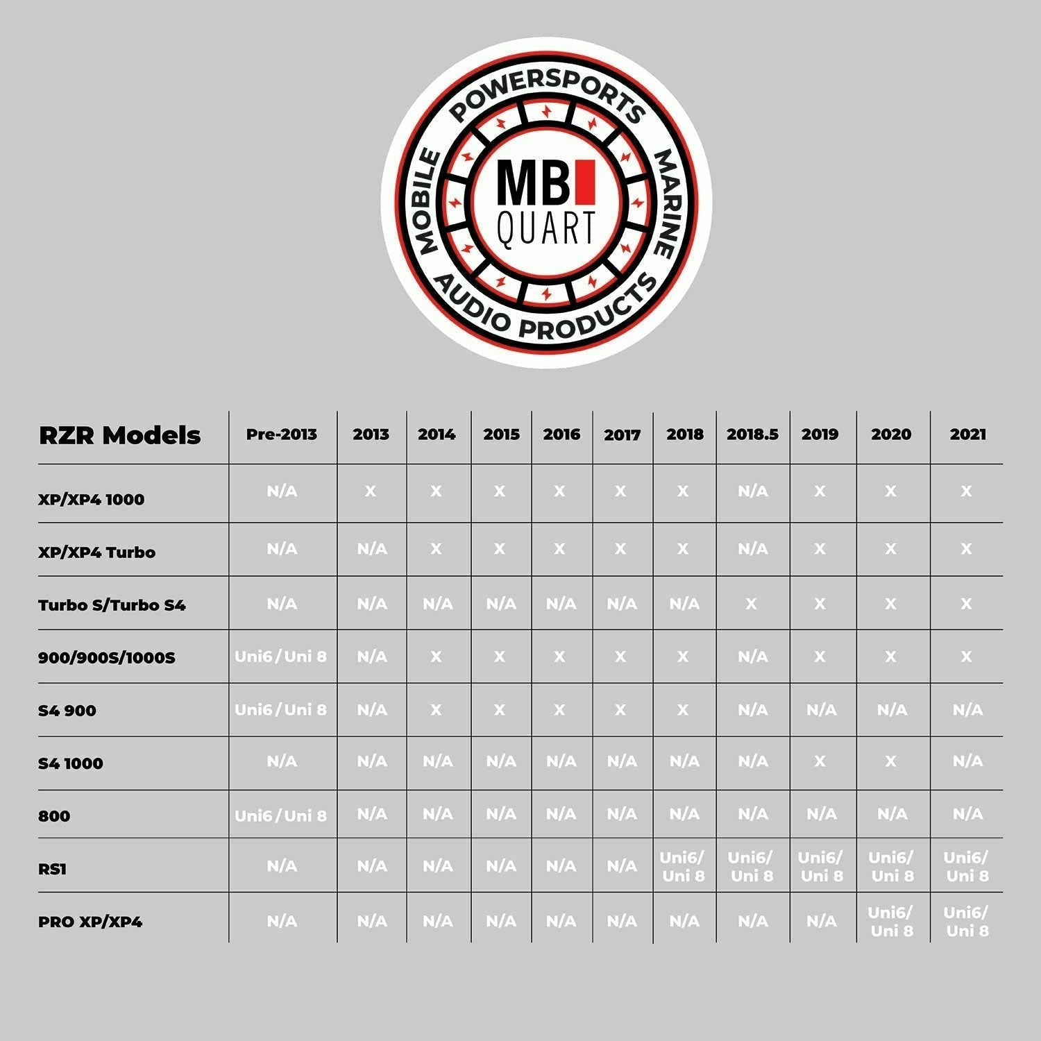 Polaris 2014-2020 RZR UTV Tuned Audio Package: Three Speaker 800 Watt STAGE 3 Audio System designed to integrate into the vehicle’s RIDE COMMAND source unit to control the system which includes two power amplifiers powering 2 compression horn speakers, 10 inch subwoofer in a ported enclosure. All necessary mounting panels and harnessing are included.