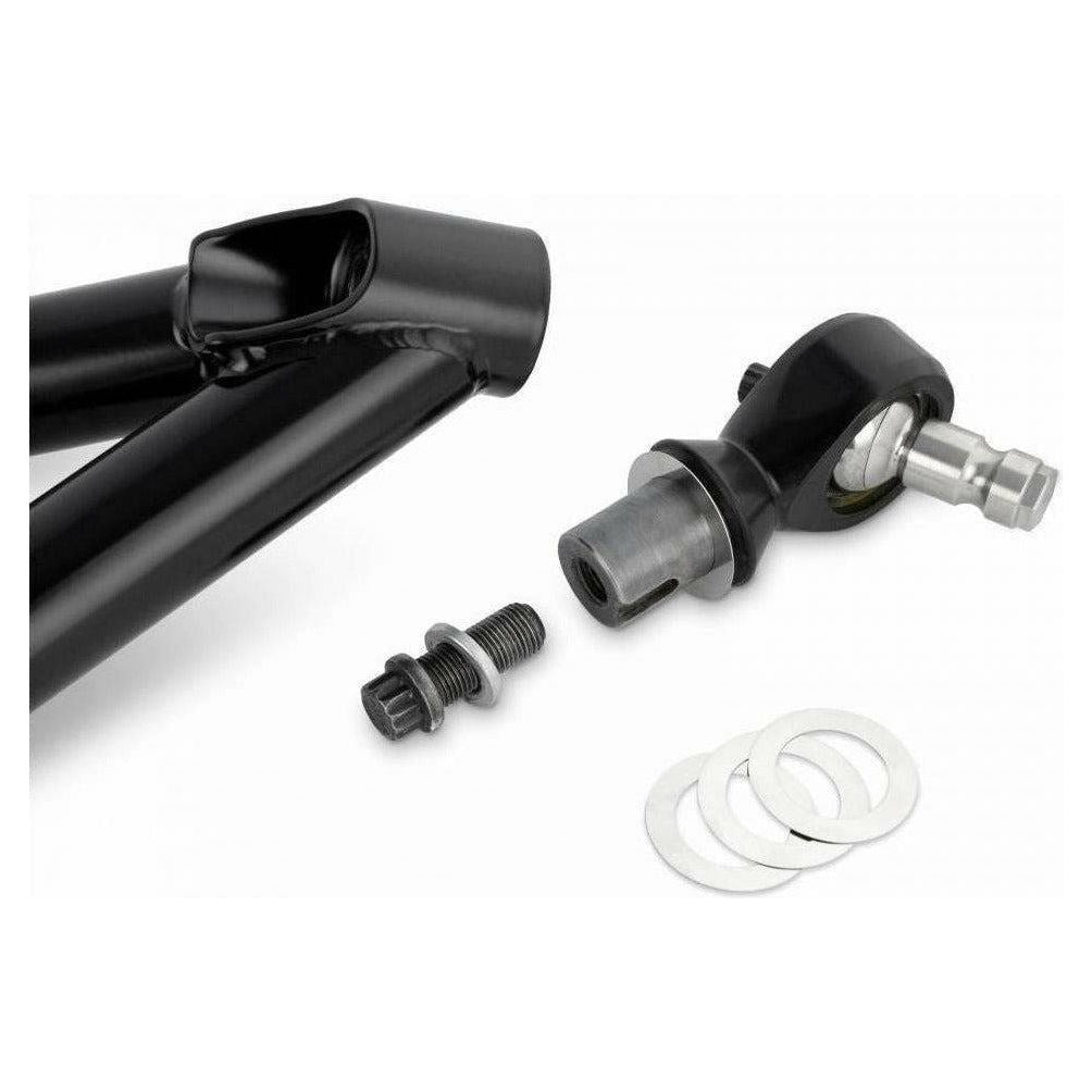 Typical adjustable control arms use a threaded rod end which doesn't offer fine camber adjustment. Cognito has engineered an ingenious solution that uses a bolt-on uniball rod end which is shim-able for fine camber tuning. Simply unbolt the rod end from the control arm and add or remove the supplied shims to get your desired camber angle.