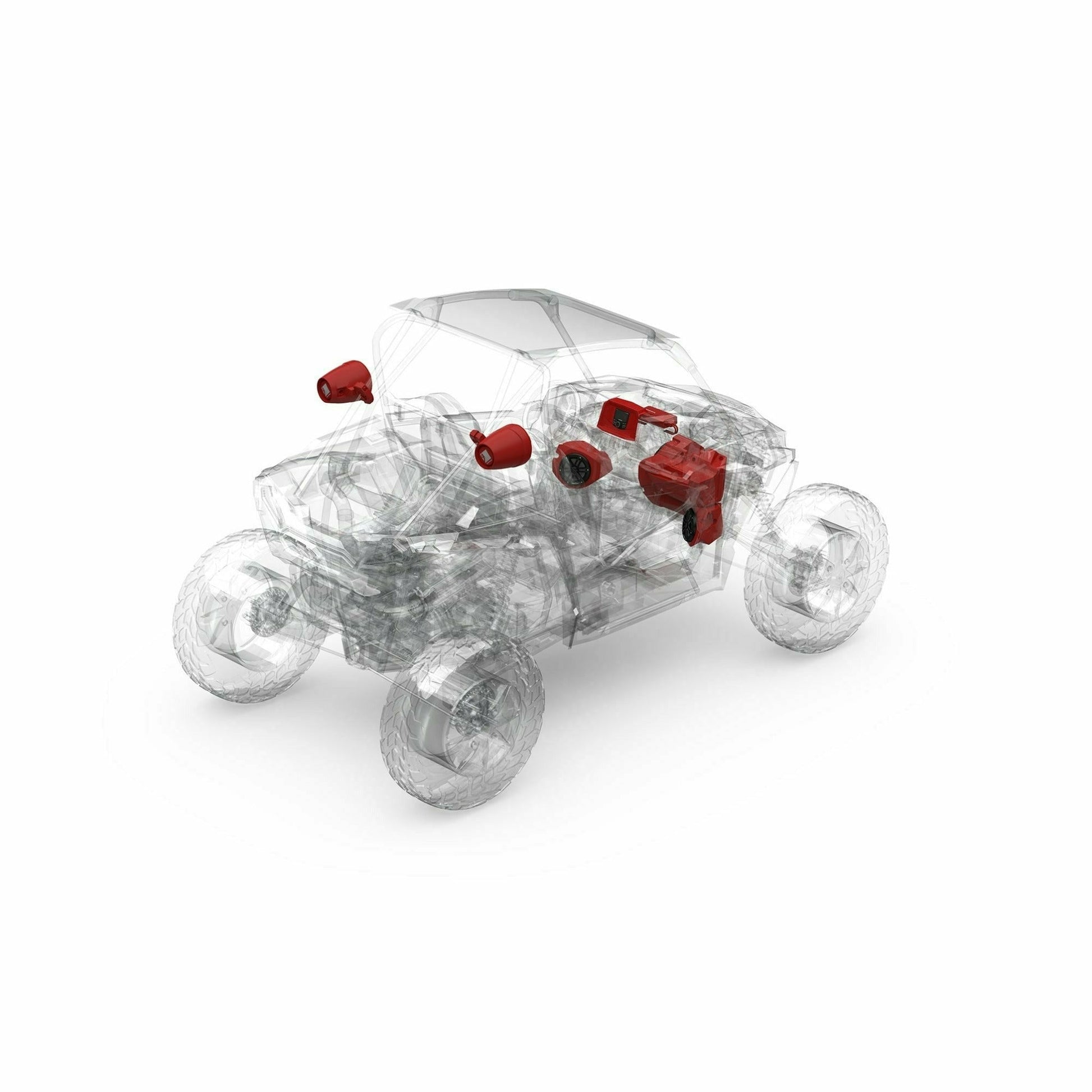 Our Gen-3 Stage 4 lets you hit the dunes and trails and make an impact! System allows you to add front and rear Color Optix™ speakers and a subwoofer on select RZR models. Kit is equipped with a PMX-2 digital media receiver, upper/lower dash kit (installation location depends on RZR model,) front speaker enclosures, M1 6.5" Color Optix™ speakers, 800-watt Element Ready™ amplifier, front subwoofer enclosure, M1 10" Color Optix™ subwoofer, 8-gauge wiring harness, M1 6.5" Color Optix™ moto-cans with harness, and a Color Optix™ controller. Kit supplied with all necessary mounting and installation hardware requiring minimal time and tools.
