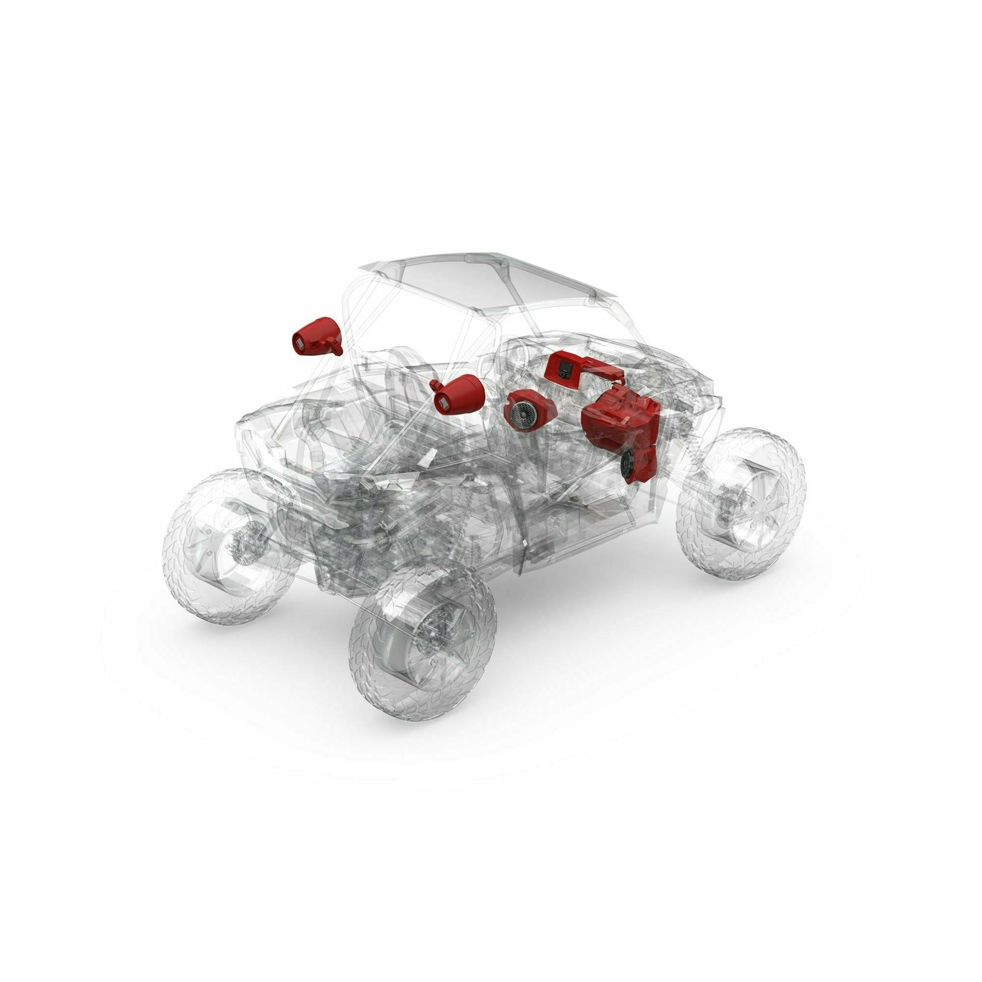 Our Gen-3 Stage 5 lets you hit the dunes and trails and be the center of attention. System allows you to add front and rear Color Optix™ speakers and a subwoofer on select RZR models. Kit is equipped with a PMX-3 digital media receiver with camera video input and SiriusXM Ready® for satellite radio, upper/lower dash kit (installation location depends on RZR model,) front speaker enclosures, M2 6.5" Color Optix™ speakers, 1,500-watt Element Ready™ amplifier, front subwoofer enclosure, M2 10" Color Optix™ subwoofer, 4-gauge wiring harness, M2 6.5" Color Optix™ moto-cans with harness, and a Color Optix™ controller. Kit supplied with all necessary mounting and installation hardware requiring minimal time and tools.